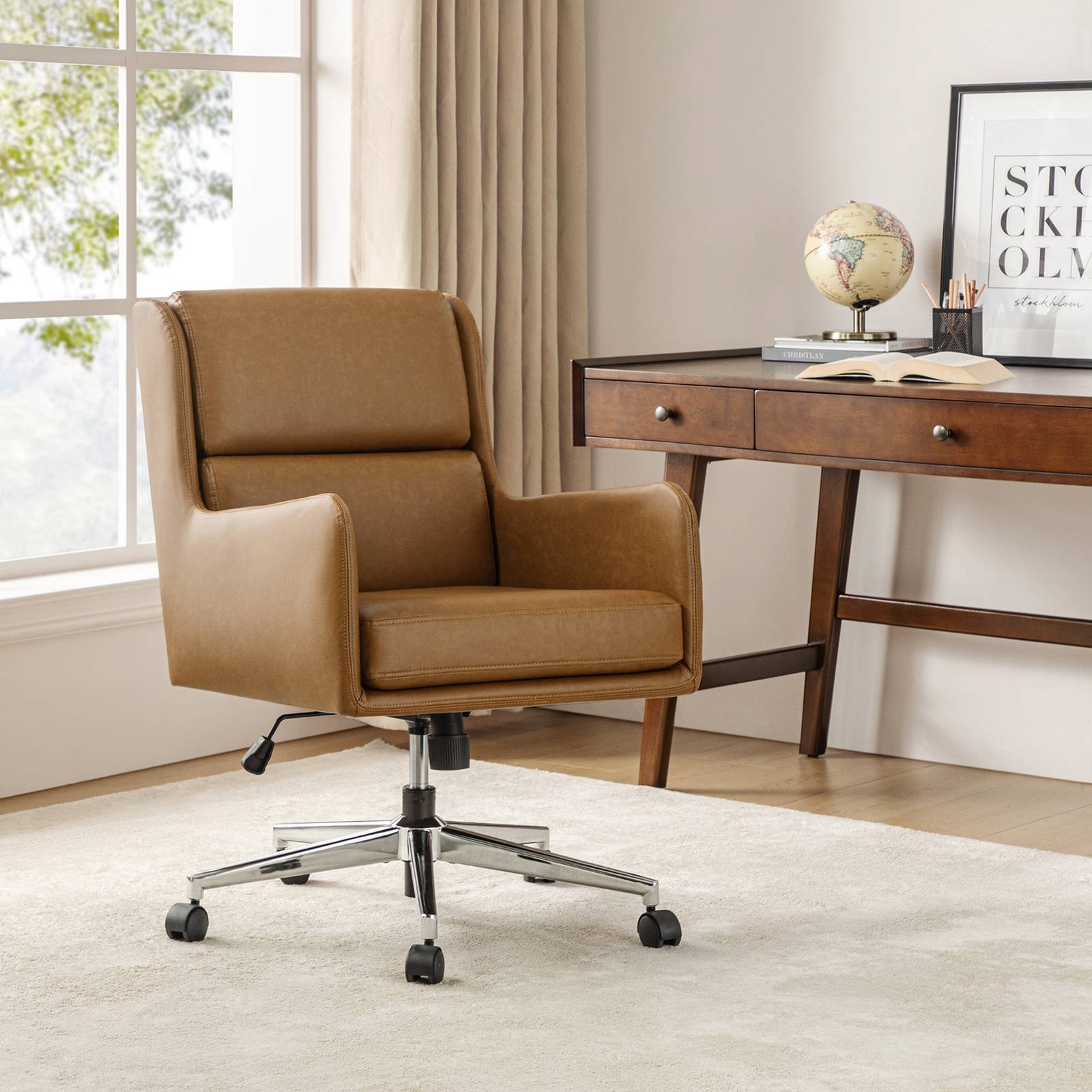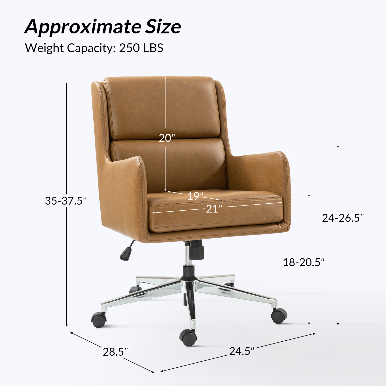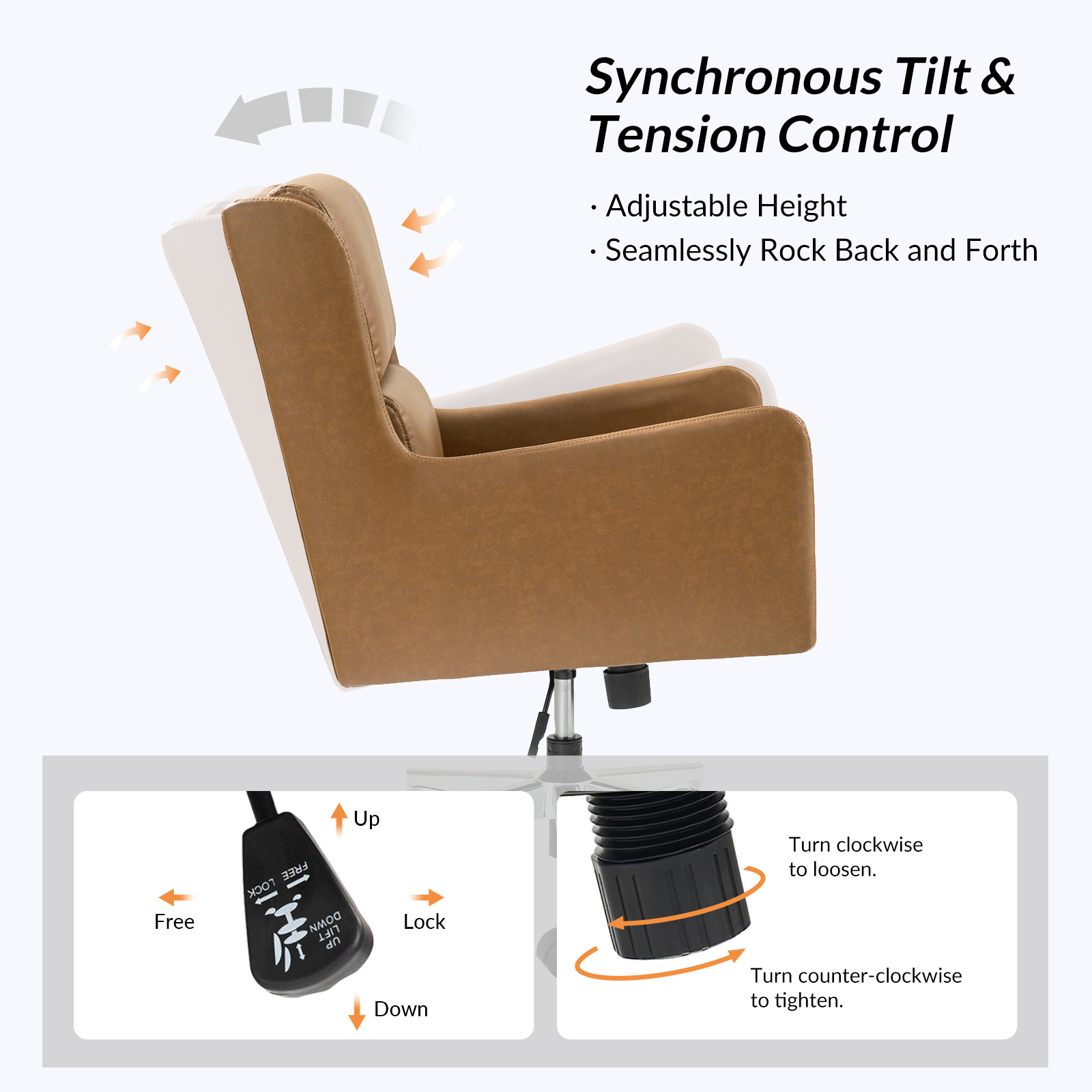 The ergonomic design provides optimal support, promoting healthy posture and reducing strain. Sink into the luxurious faux leather upholstery, offering the look and feel of genuine leather with easy maintenance. The swivel seat allows you to effortlessly glide between tasks, while the up and down adjustment ensures perfect alignment with your workstation. Need a break? The tilting mechanism offers added relaxation during those long work sessions. This chair is your partner in productivity and comfort!