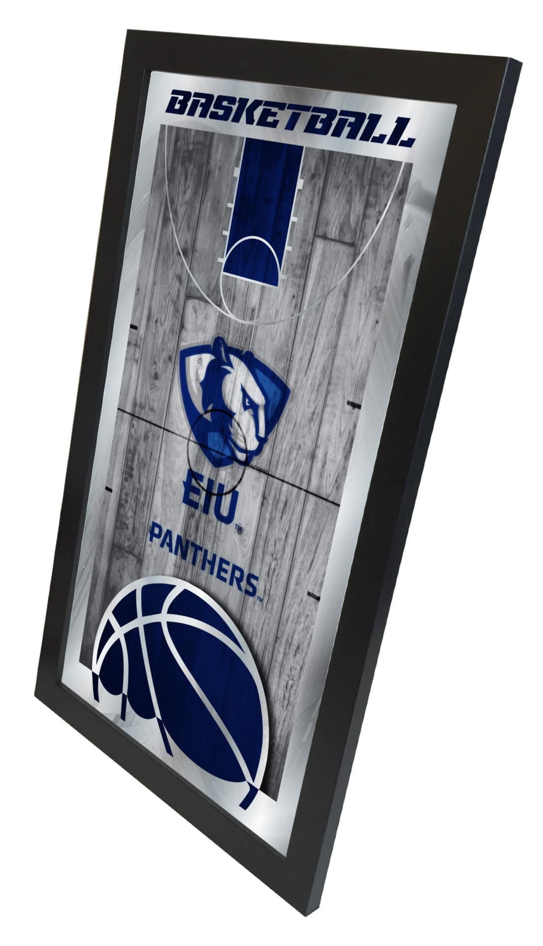 Show your school pride with the Official Licensed Basketball Wall Mirror. This mirror features a simple yet elegant design, where vibrant colors burst through the 1/8″ thick glass, beautifully highlighted by mirrored accents. It is framed with a sleek black, 1 1/4″ wrapped wood frame and includes dual saw-tooth hangers for easy installation. Measuring 15 inches high by 26 inches wide, this mirror is perfect for your office, garage, or any room in your home. Whether you are purchasing it as a gift for a recent graduate, a dedicated sports fan, or for your own enjoyment, you’ll appreciate the quality and craftsmanship of this mirror.