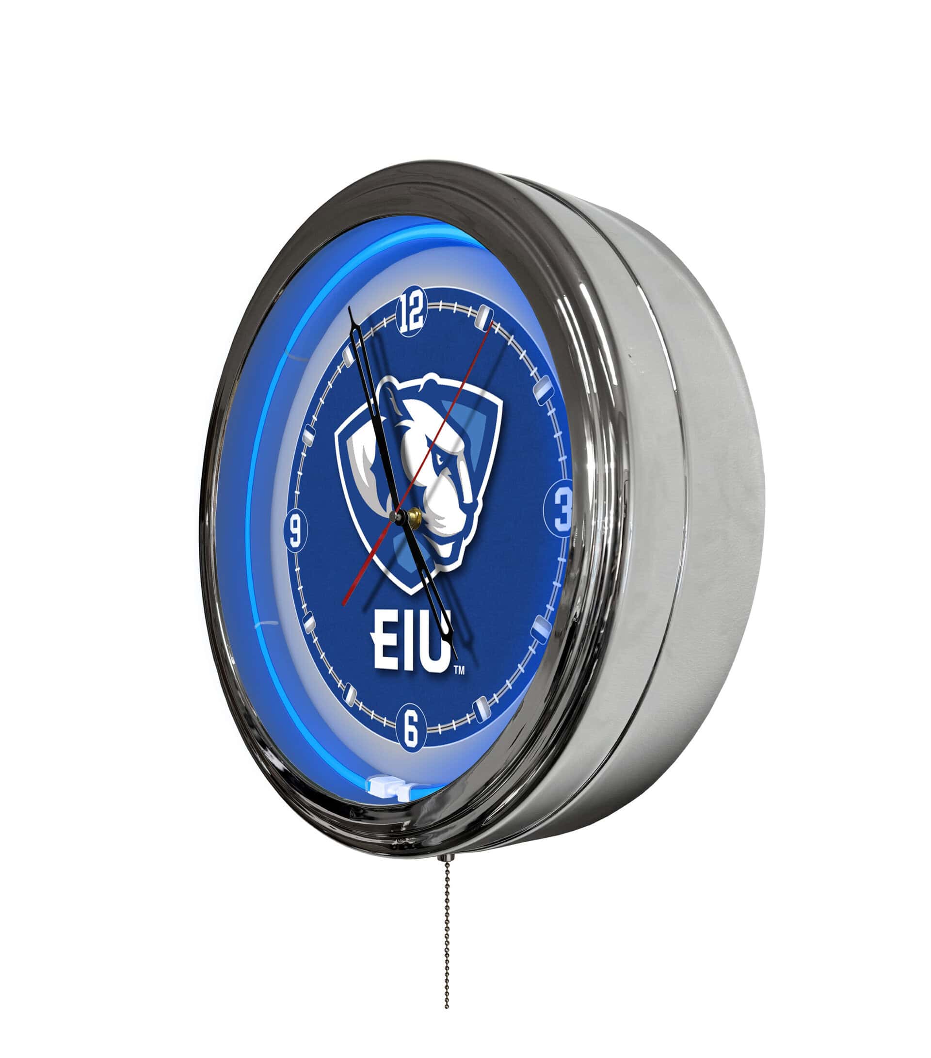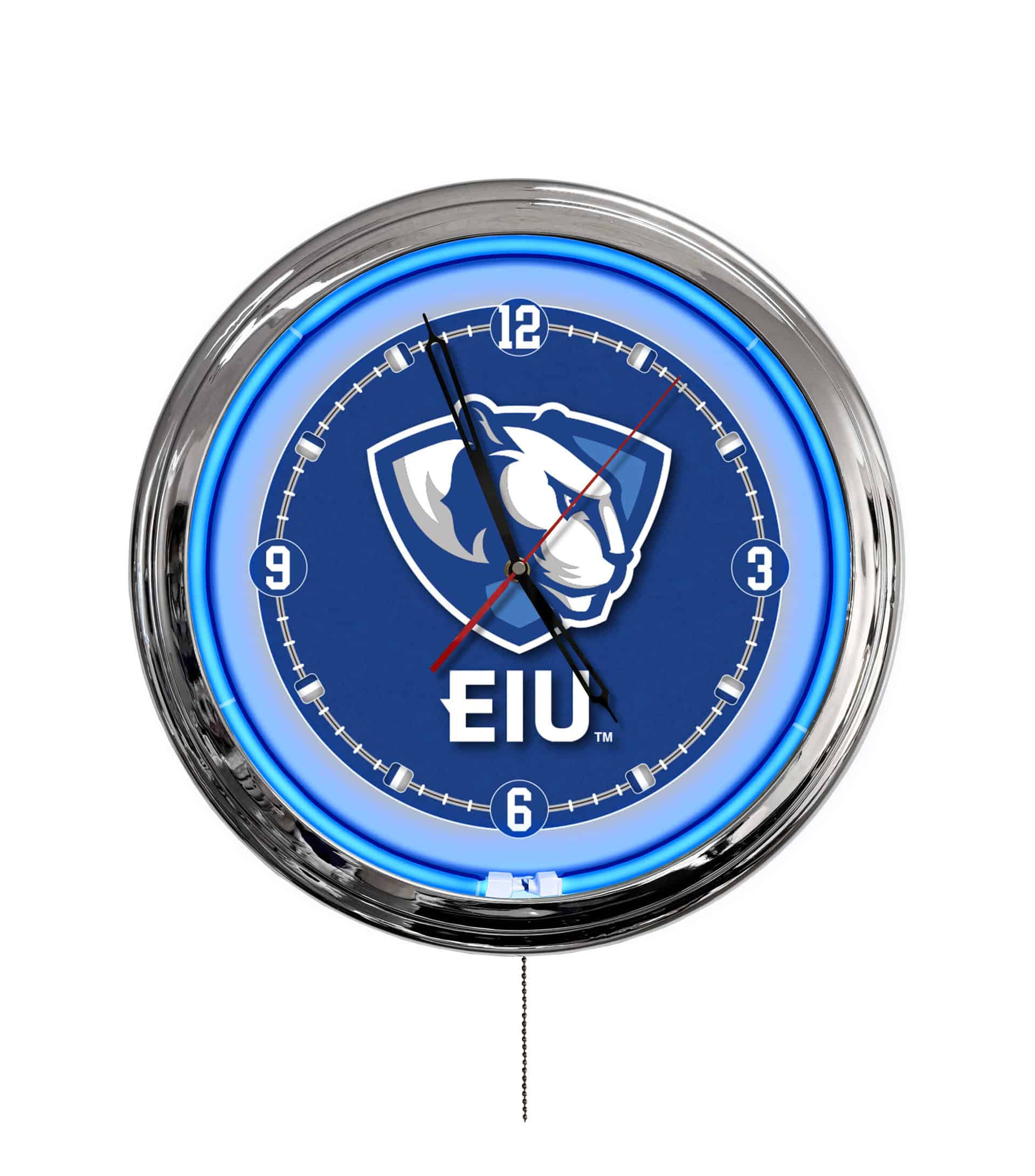 The Eastern Illinois University 16-Inch LED Wall Clock in Chrome is a stylish and modern addition to any man cave. This clock features a vibrant multi-color design that brings your space to life, showcasing your team pride in an eye-catching way. With a variety of colors and dynamic modes, you can easily customize the ambiance of your room. Its sleek chrome casing and illuminated logo make it a perfect centerpiece for sports enthusiasts.