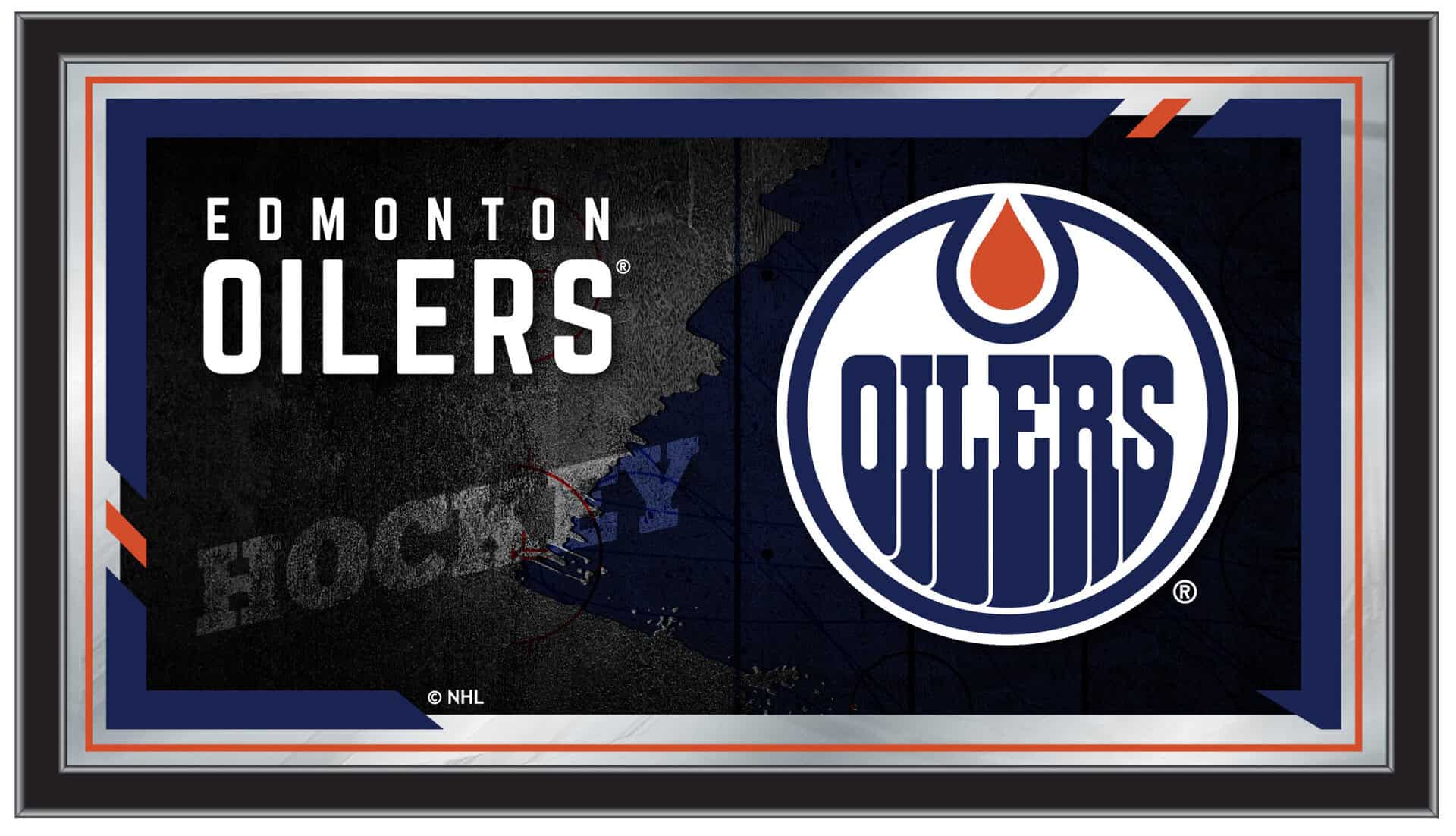 The Edmonton Oilers 15×26 Hockey Collector Mirror is the perfect way to showcase your team pride in any setting. With its simple yet elegant design, the vibrant colors of the logo burst through the 1/8″ thick glass, beautifully complemented by mirrored accents. This stylish mirror is framed in a black, 1 1/4″ wrapped wood frame and features saw-tooth hangers for easy installation. Measuring 15 inches high by 26 inches wide, it fits perfectly in your office, garage, or any room in your home. Whether you’re treating yourself or gifting it to a sports super fan, this mirror is a great addition to any decor.