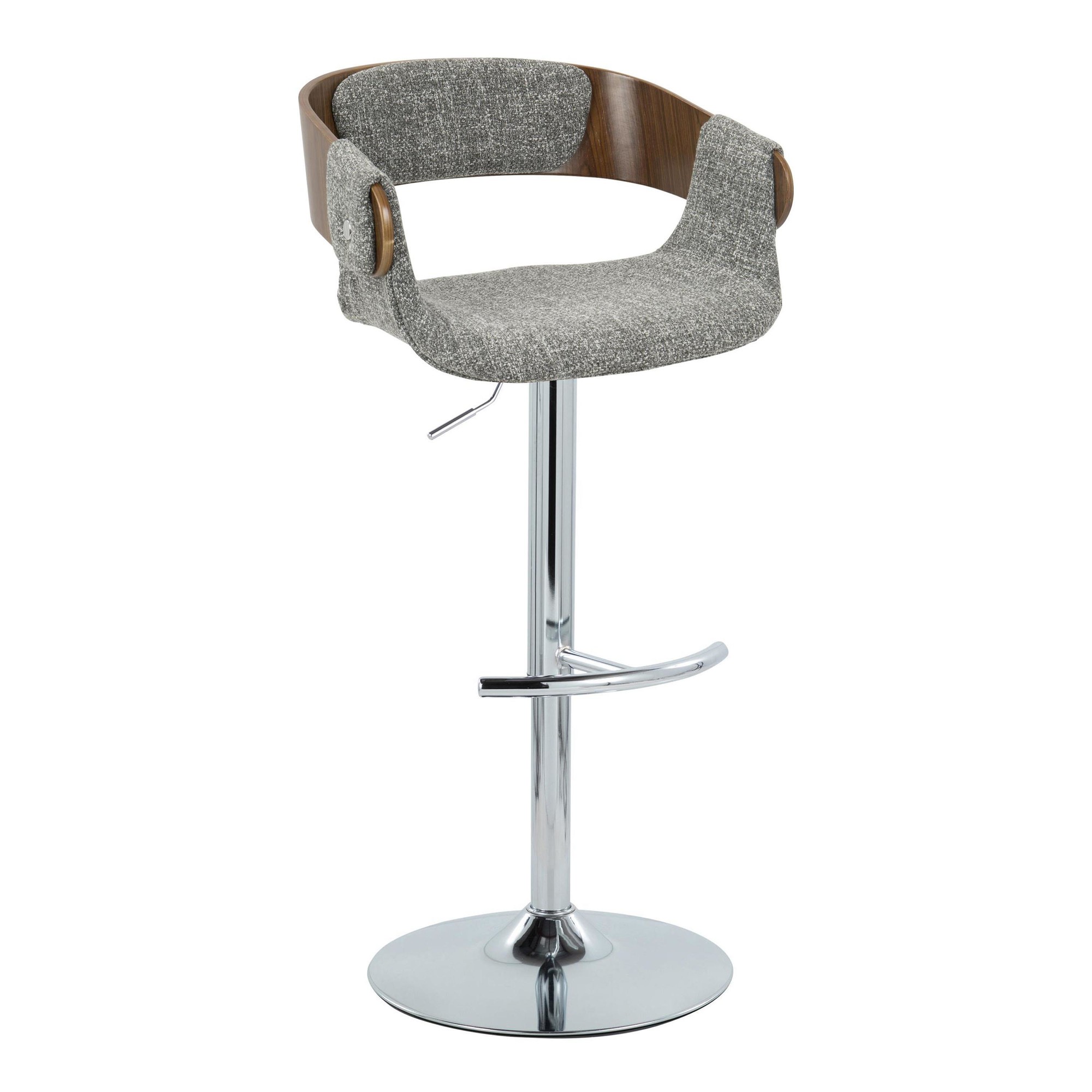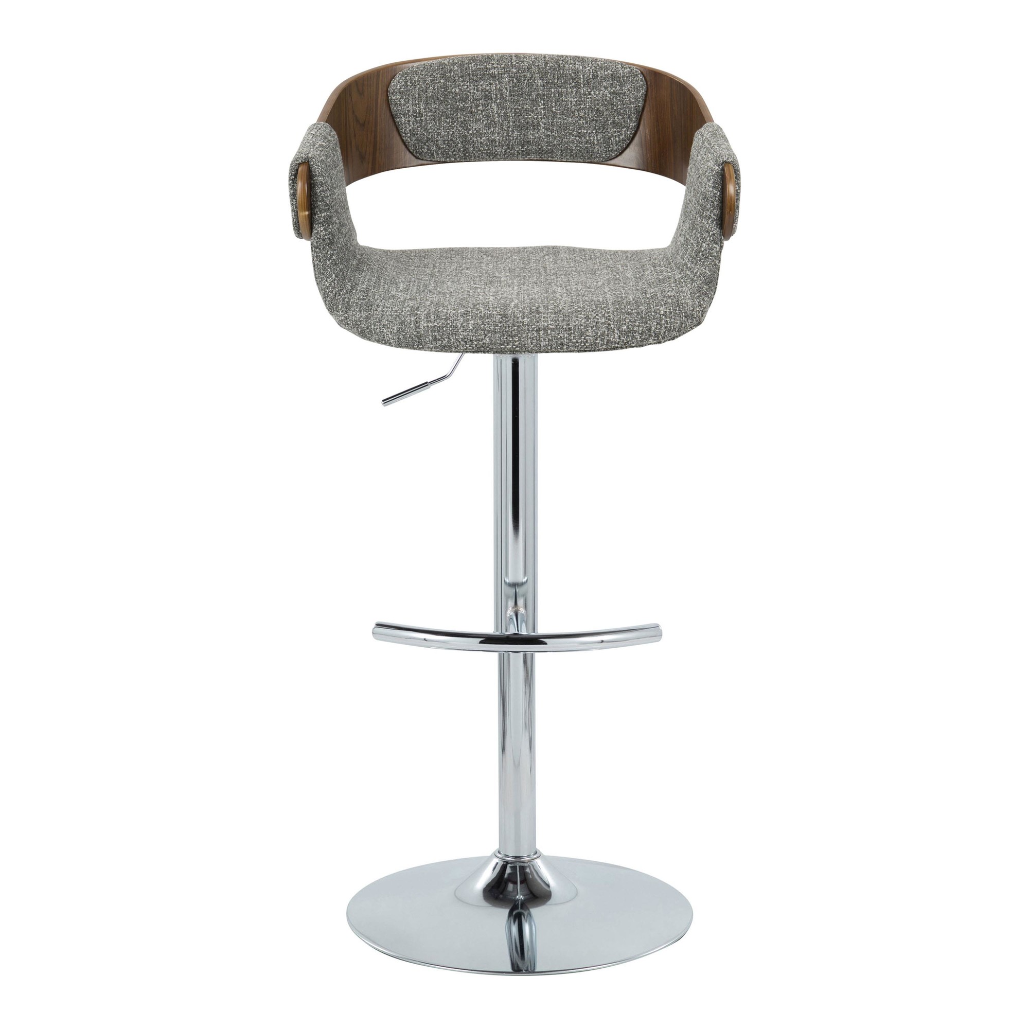 Bring mid-century style to your space with these Grey Swivel Barstools. These versatile stools feature stylish woven fabric upholstery and a sturdy adjustable base. The adjustable height and 360-degree swivel add comfort, making them great for your kitchen, bar, or game room. The chrome metal base includes a rounded T footrest. Each stool has a weight limit of 250 lbs. Sold in pairs, some assembly is required. Product Specs: 18.25″L x 21.75″W x 35.75-44″H, Chrome Metal, Walnut Wood, Grey Fabric.