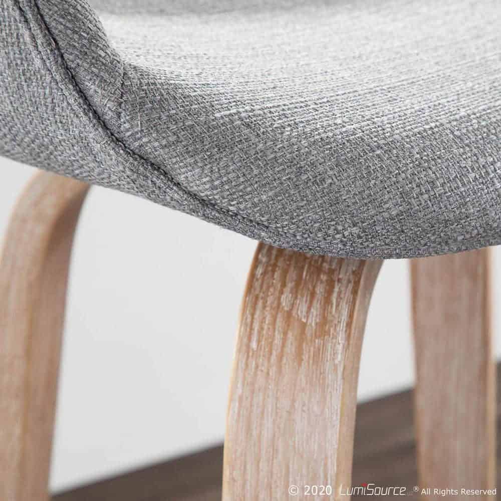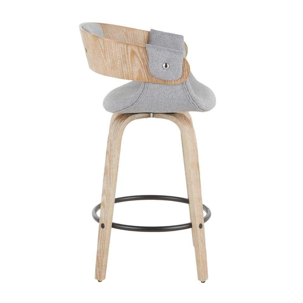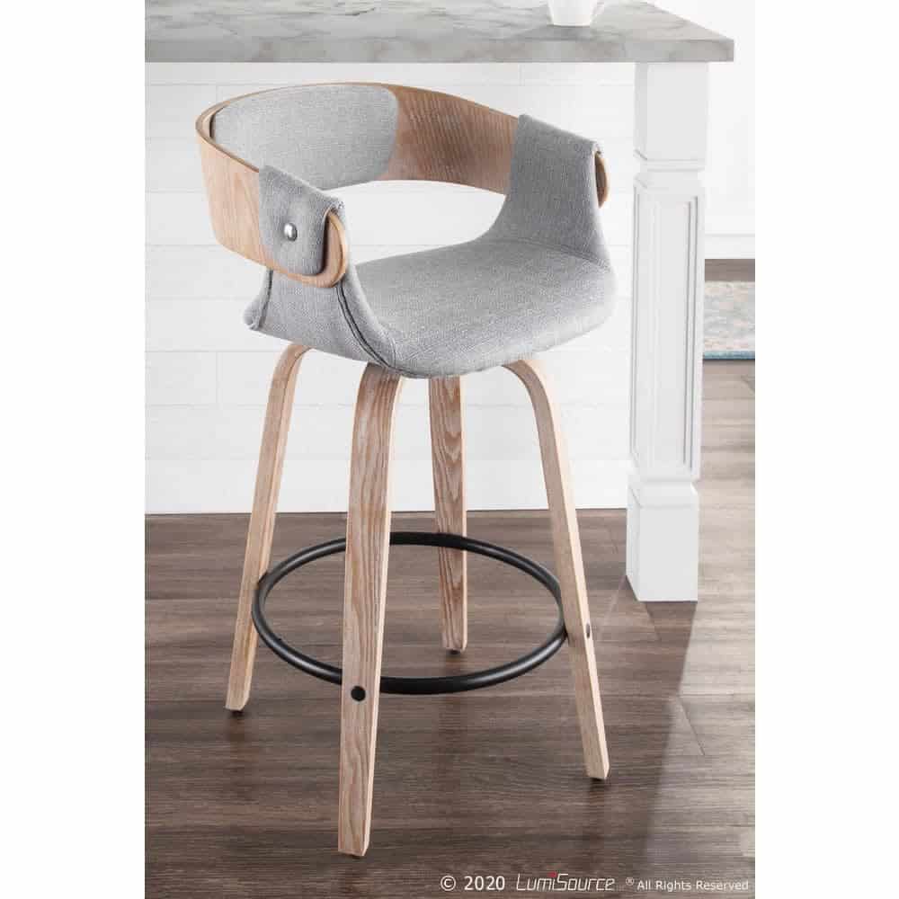 The Elisa Counter Stool is perfect for your mid-century inspired space! It features white washed wood swivel legs, stylish woven fabric upholstery, and a sturdy chrome footrest. Ultra versatile, the Elisa is great for use in any kitchen, bar, or break room. Enjoy the mid-century modern styling and comfortable seating.