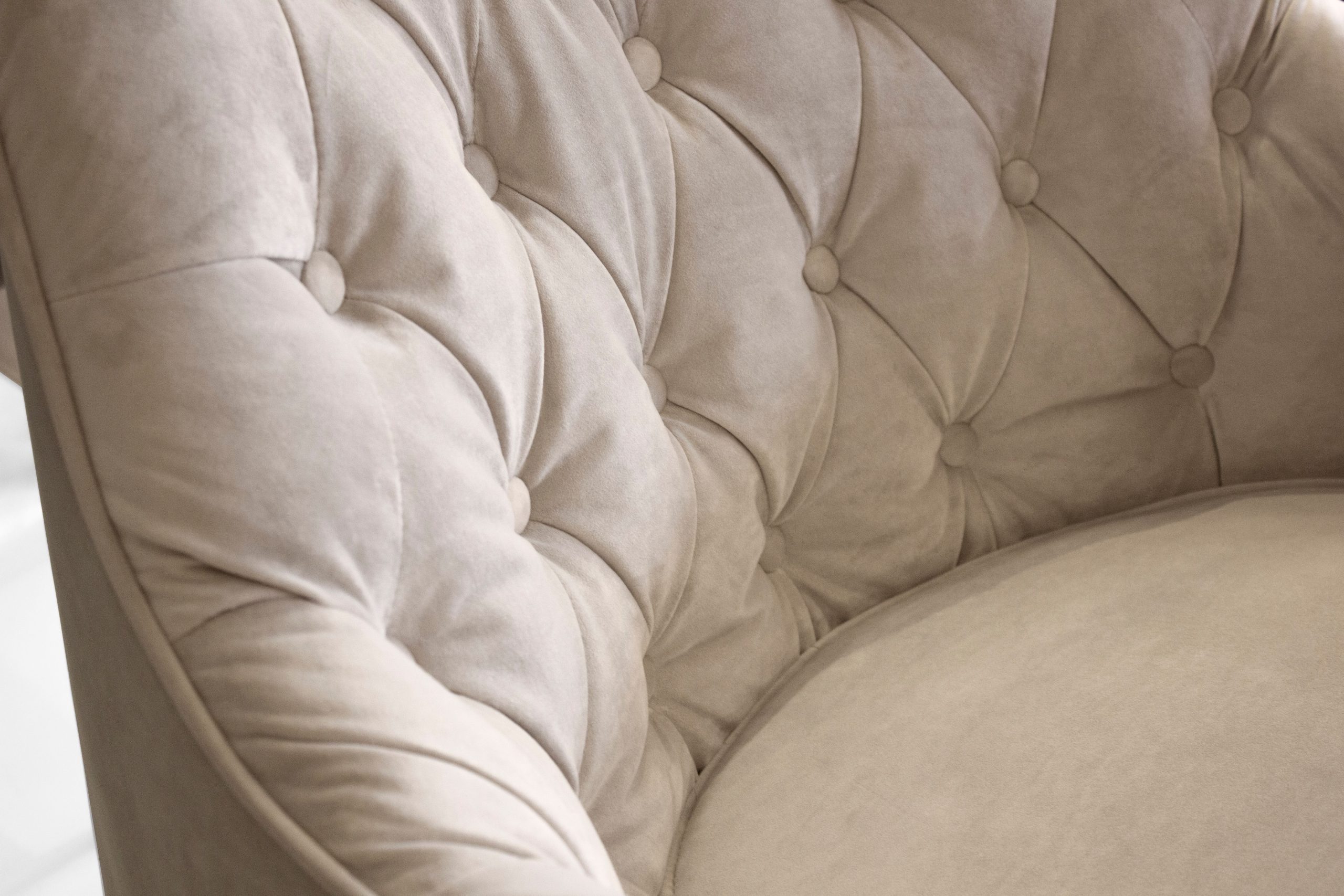 The ELLINGTON Oyster Velvet Lounge Chair is an elegant armchair designed for excellent comfort. Its hand-tufted seating gives it a distinctive and sophisticated look, perfect for adding a touch of class to any space.