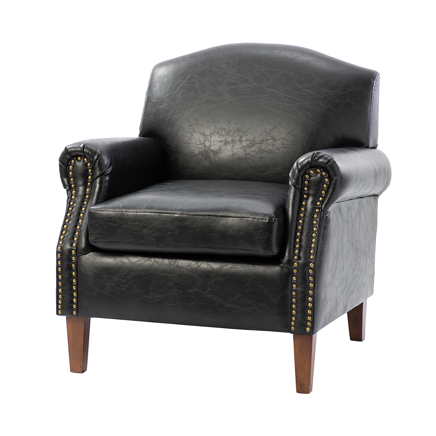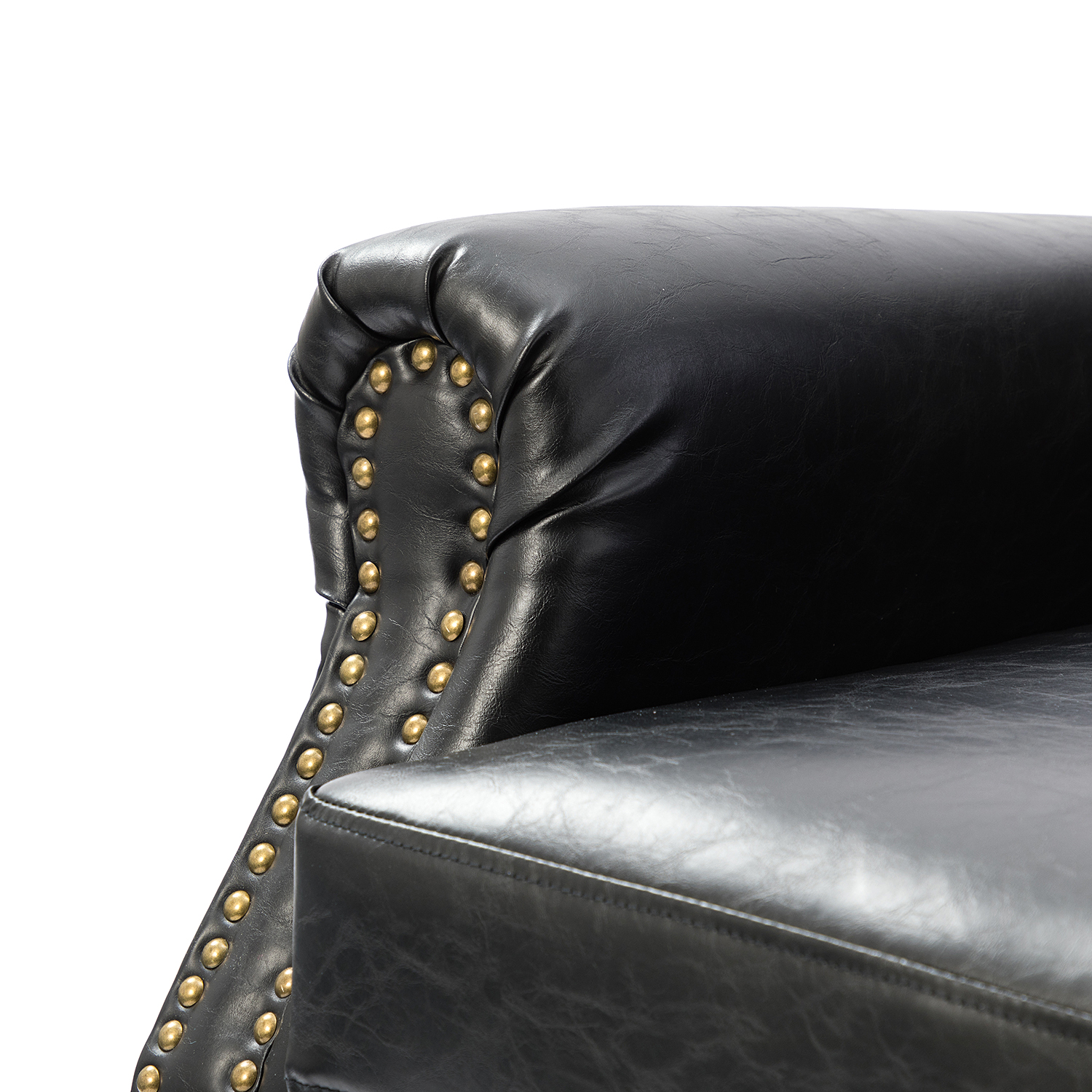 Looking for the perfect spot to unwind? The Eric Black Vegan Leather Nailhead Trim Transitional Armchair is just what you need. Whether you’re settling in for a movie night or diving into a good book, this armchair offers both style and comfort. Its sturdy frame, plush vegan leather upholstery, and chic nailhead trim make it a standout piece for any living room, bedroom, or cozy corner.
