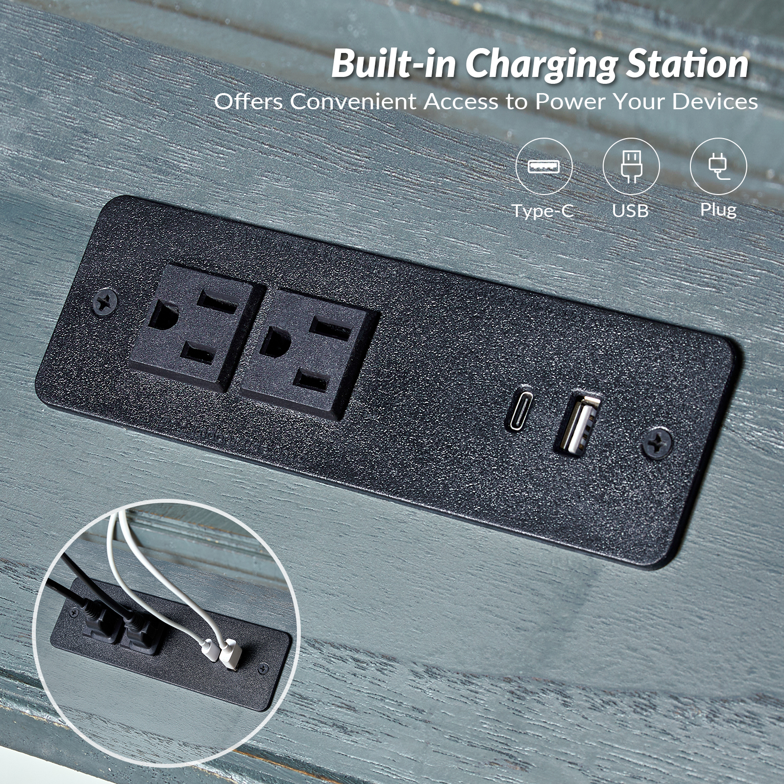 • Built-in Charging Outlets: Equipped with built-in electrical outlets, allowing you to conveniently charge your devices without needing extra extension cords or power strips.