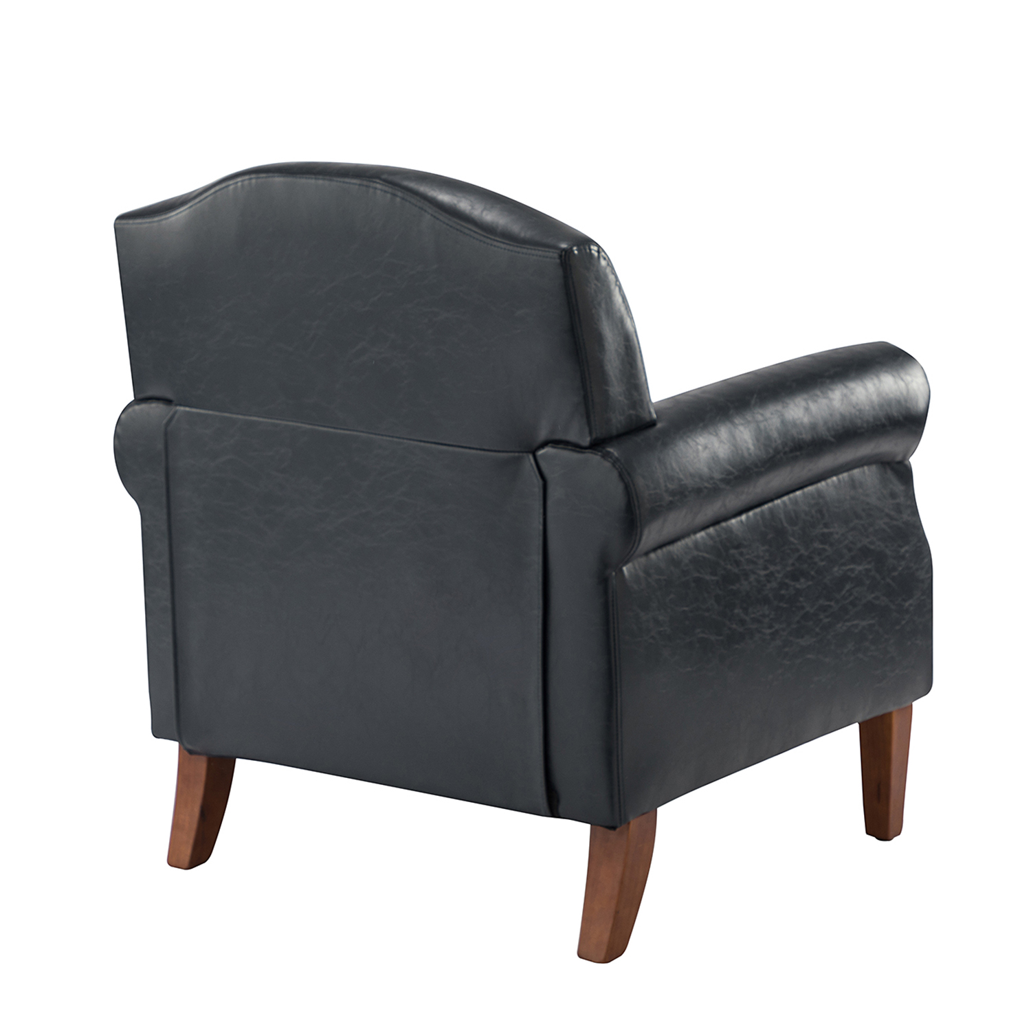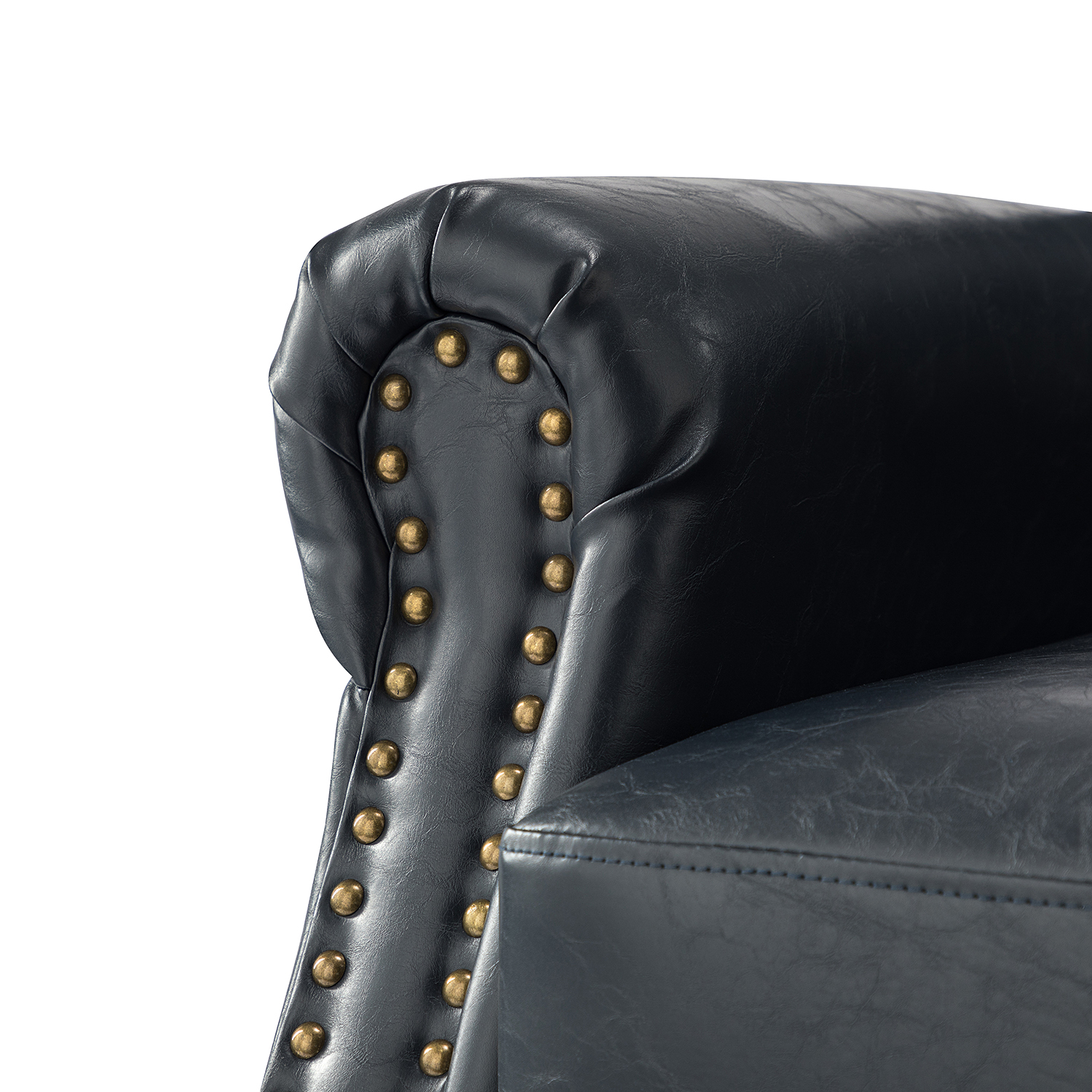 This transitional armchair is the perfect spot to unwind after a long day! Built with a sturdy wood frame and plush foam padding, it offers both durability and exceptional comfort. The luxurious vegan leather and streamlined design create a cozy and inviting space, while the chic nailhead trim adds a touch of elegance. This classic armchair with its camelback design is a fantastic addition to your living room, bedroom, or any space where you want to relax in style.