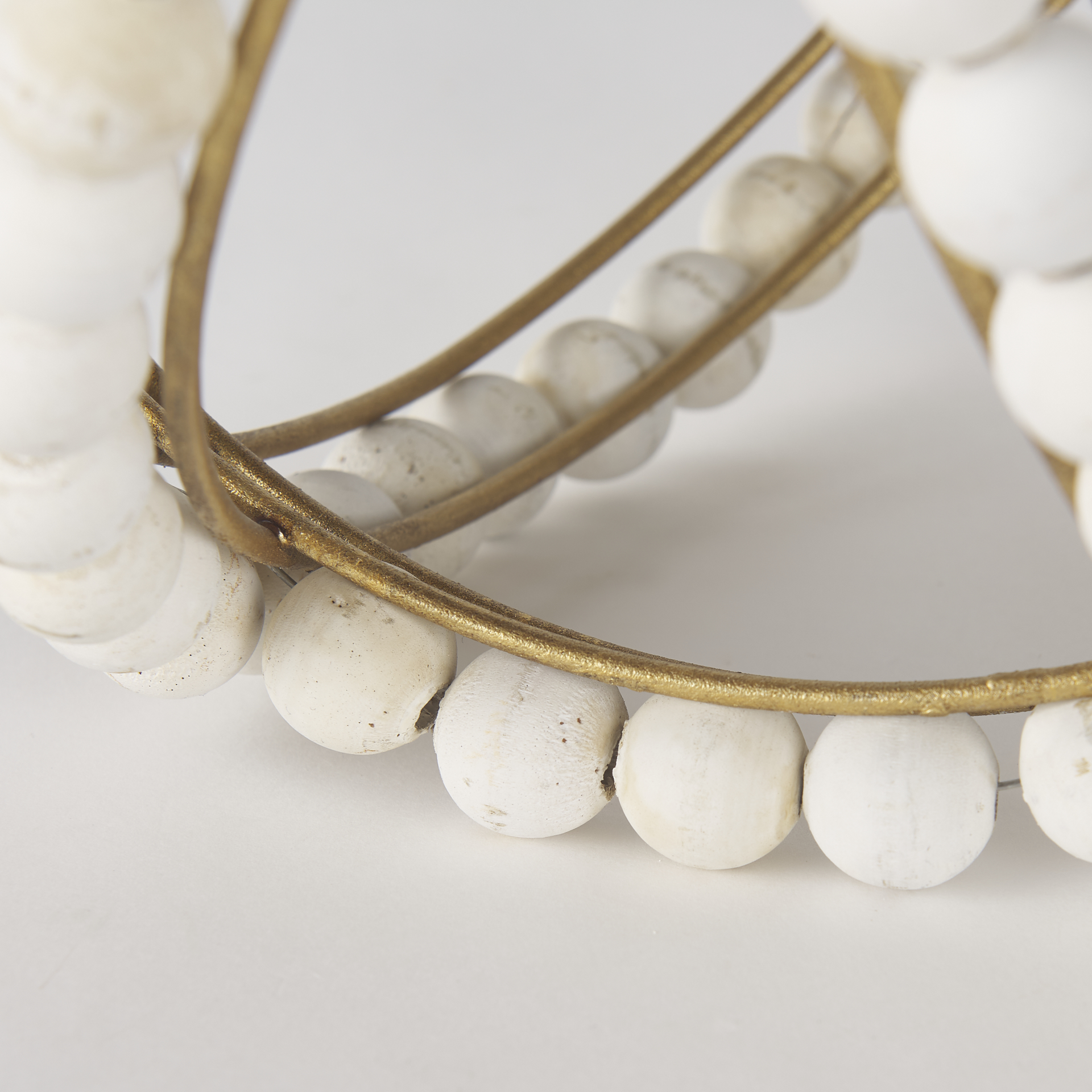 - Finish: Antiqued-gold tone with whitewashed wooden bead details