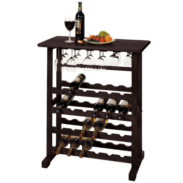 The Espresso Floor-Standing Wine Rack with Stemware Storage (24-Bottle) offers a stylish and practical solution for wine enthusiasts. With room for up to 24 bottles and a convenient top stemware hanging rack, this wine rack combines storage, display, and functionality in one compact design. Its durable wood construction and rich espresso finish make it a sophisticated addition to any space. The top counter space allows for serving wine, displaying hors d’oeuvres, or showcasing additional bottles, making it perfect for entertaining or personal use.