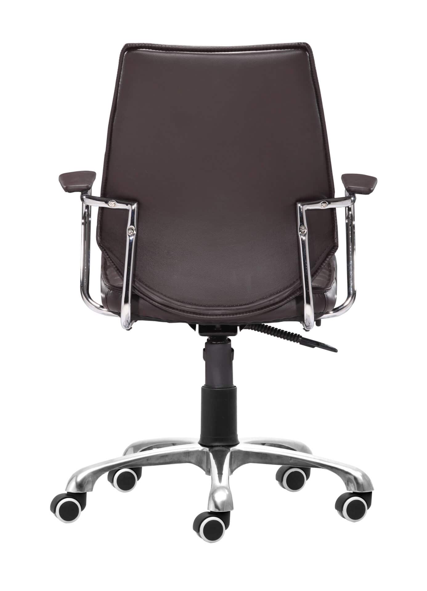 Be the captain of your office with the Espresso Low Back Office Chair with Adjustable Height and Tilt. This chair offers the perfect blend of comfort and functionality, making it an ideal choice for any office or man cave setup. The chair features a sleek chrome frame wrapped in durable, plush faux leather, accented with panel tufting for added comfort. With its adjustable height, tilt mechanisms, and swivel base, you’ll have full control over your seating position. Easy-rolling casters make mobility a breeze, while padded armrests provide extra comfort during long work sessions.