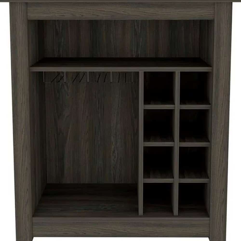 The Espresso Modern Bar Cart With Cabinet and Wine Storage is a stylish and functional addition to any home, offering a perfect solution for storing and displaying your wine collection. Designed with a freestanding rectangular shape, this bar cart seamlessly fits into any room. Its espresso finish adds sophistication to your decor, while the cabinet and shelves provide ample storage space for organization. With a capacity to hold up to 8 wine bottles, this modern bar cart is ideal for entertaining guests or hosting parties. Crafted from durable particle board and manufactured wood, it combines durability with aesthetic appeal.