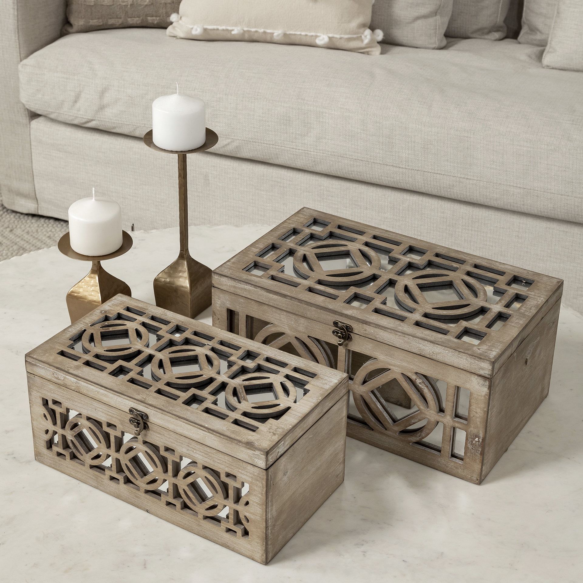 Looking for a stylish and functional way to store your treasures? The Estooki set of mirrored boxes is the perfect solution! These natural wood boxes feature a unique carved pattern that reveals a mirrored inlay, adding a touch of elegance to any space. They’re not just beautiful; they’re also practical for keeping your belongings organized.