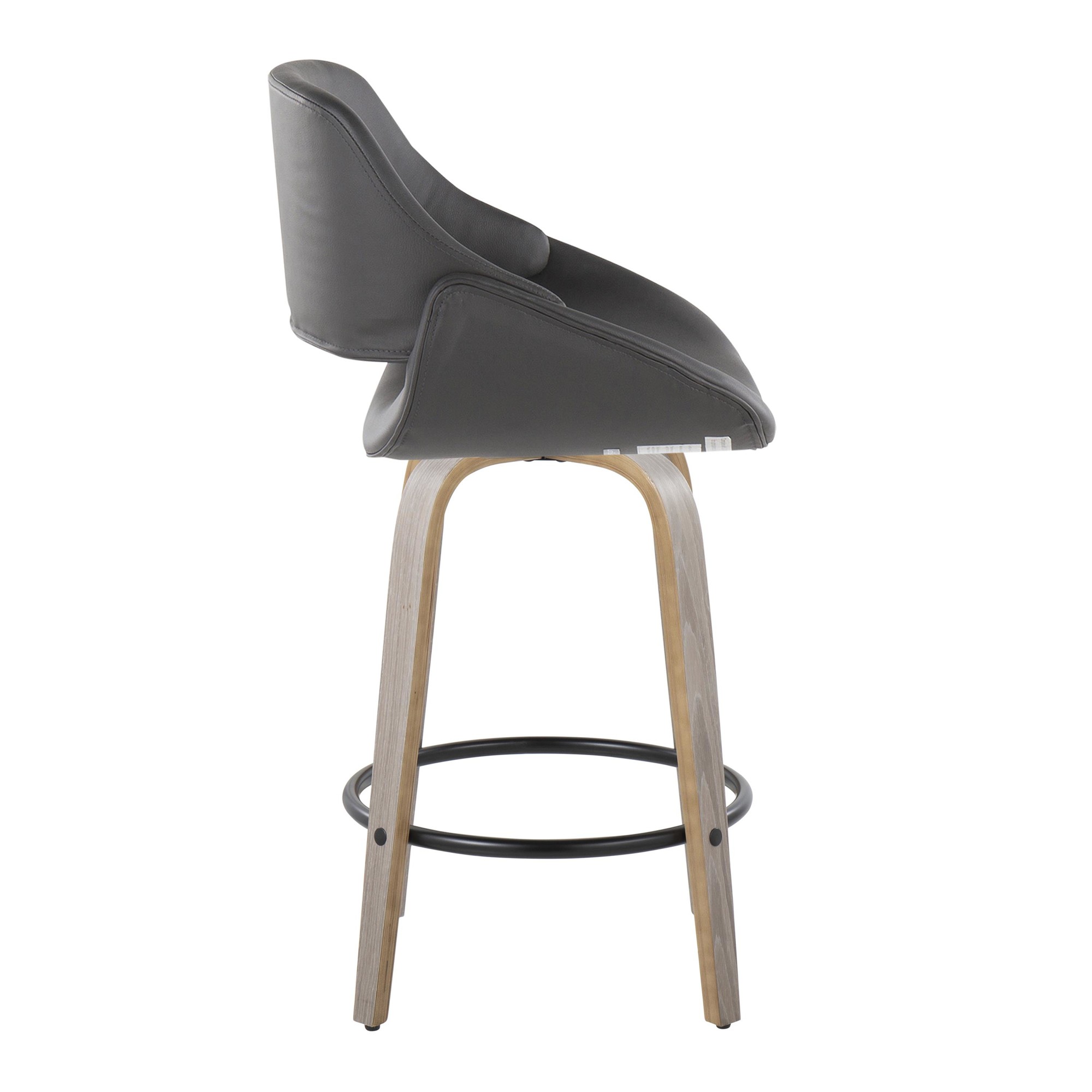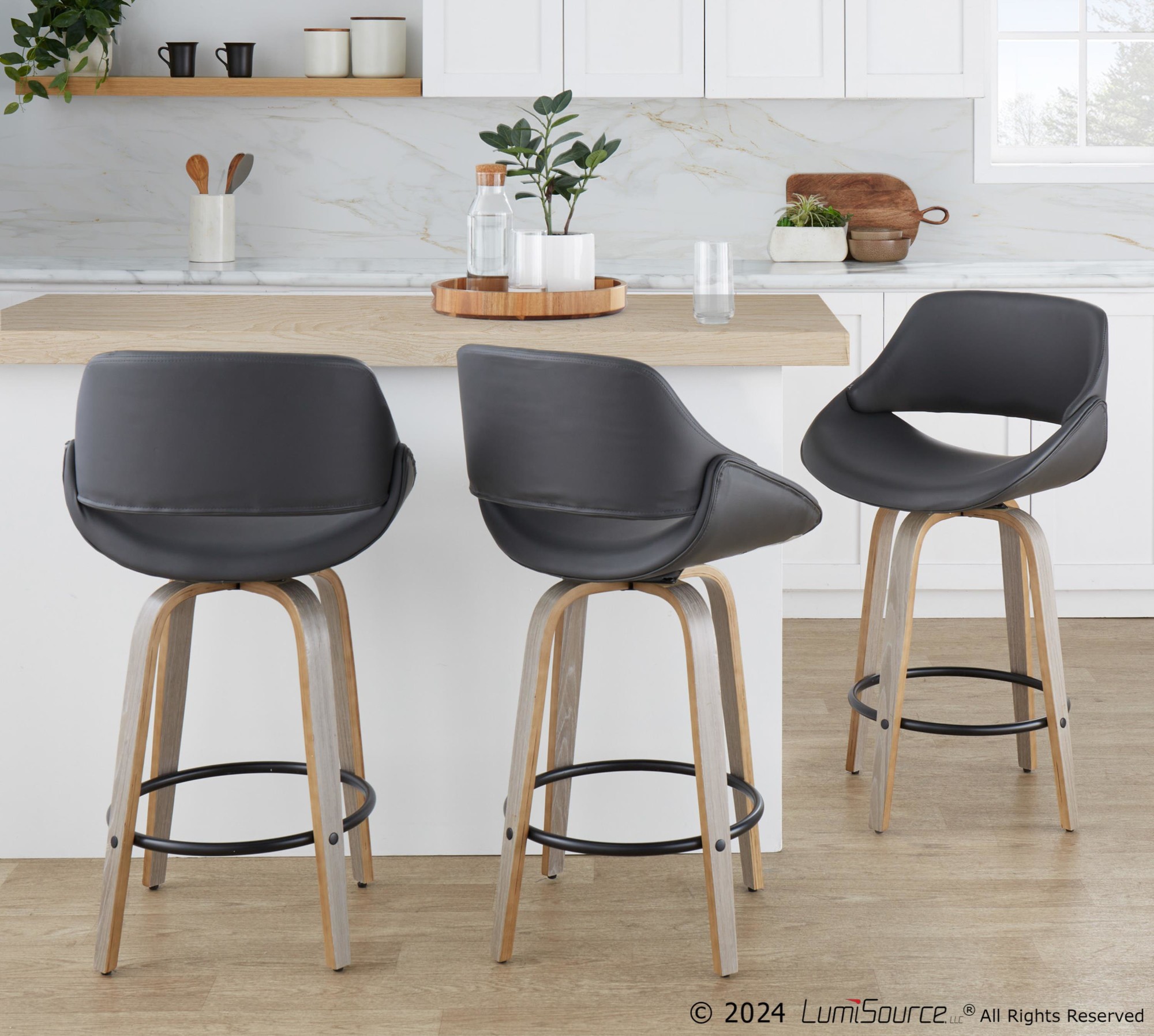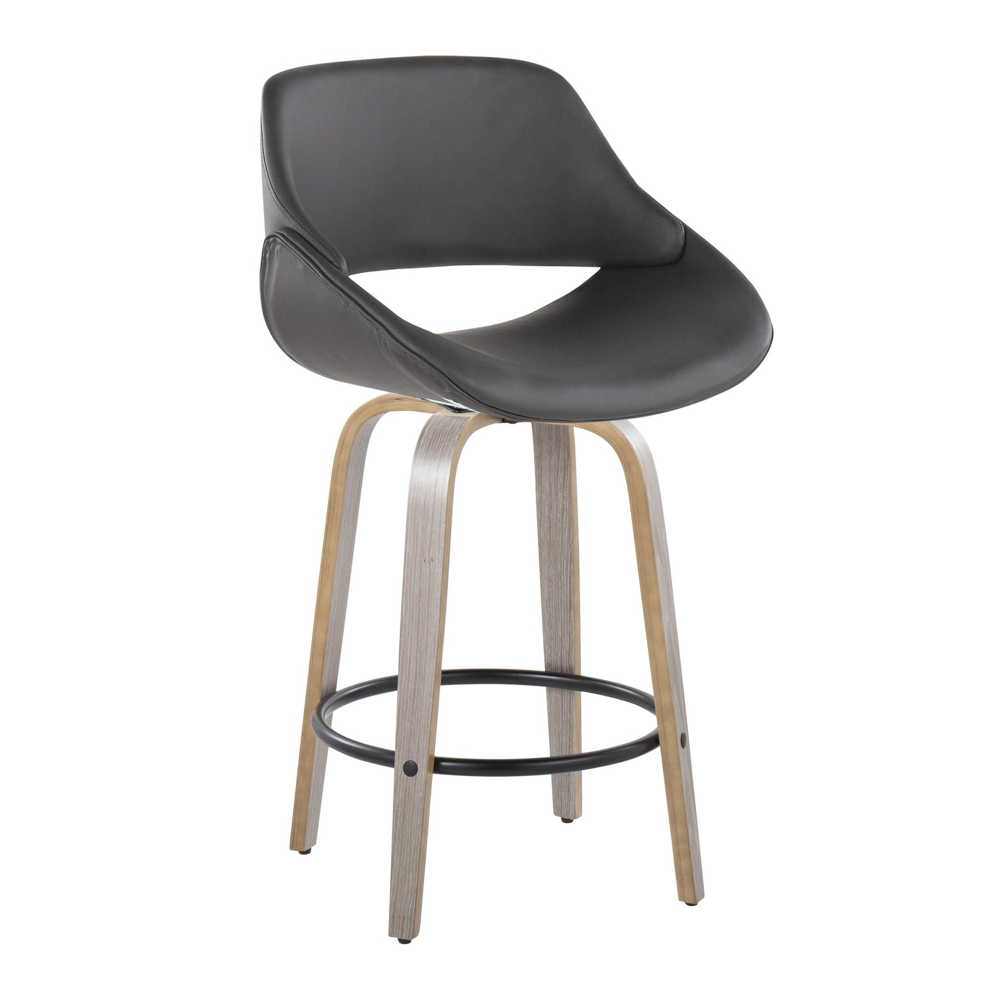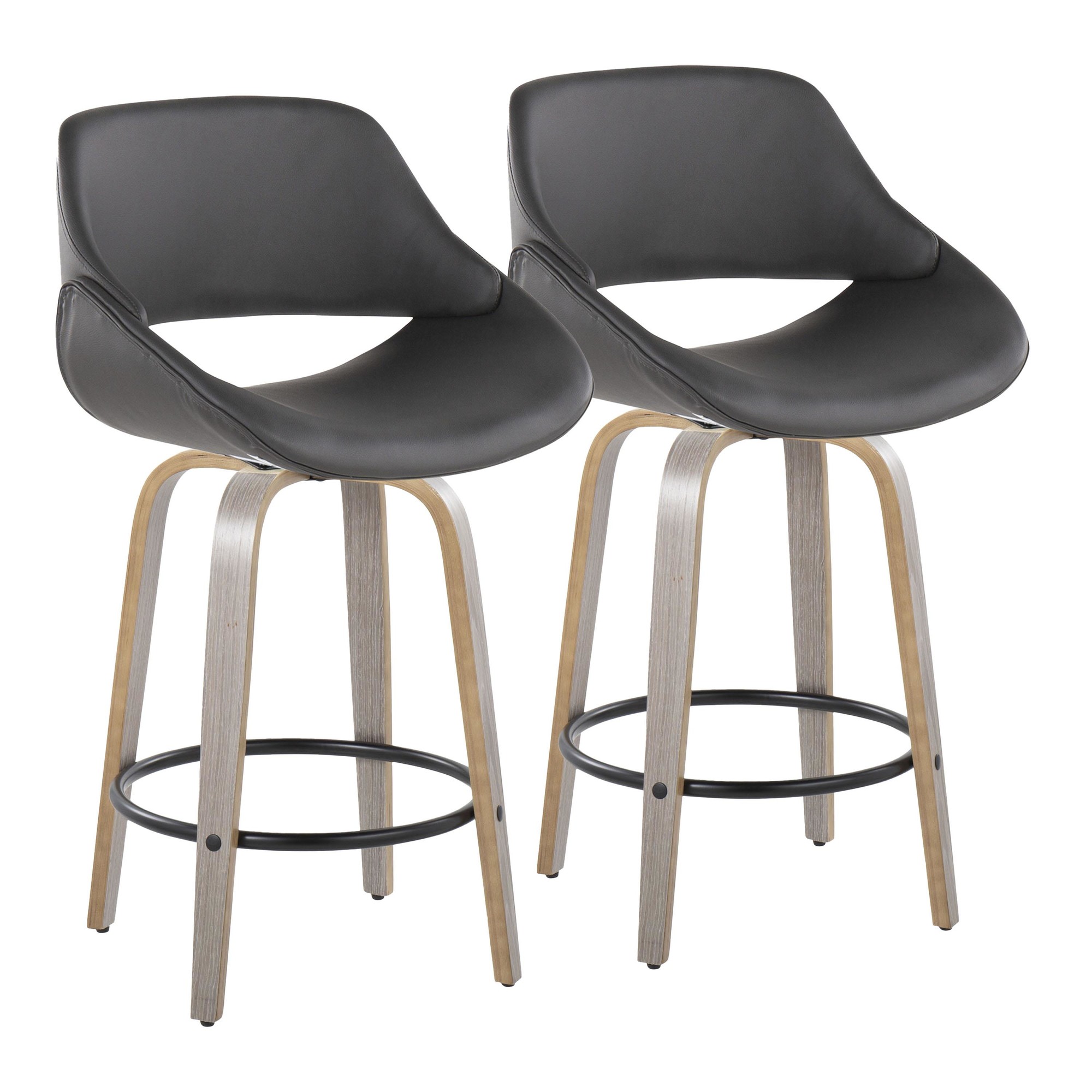 The Fabrico 26-Inch Counter Stools offer a welcoming and stylish seating option. The curved back and contoured upholstered seat provide exceptional comfort, while the flared wood swivel legs add a touch of mid-century modern design. Enjoy the 360-degree swivel and the added convenience of a black metal footrest. These stools are sold in pairs, making them a perfect addition to your kitchen island or bar area.
