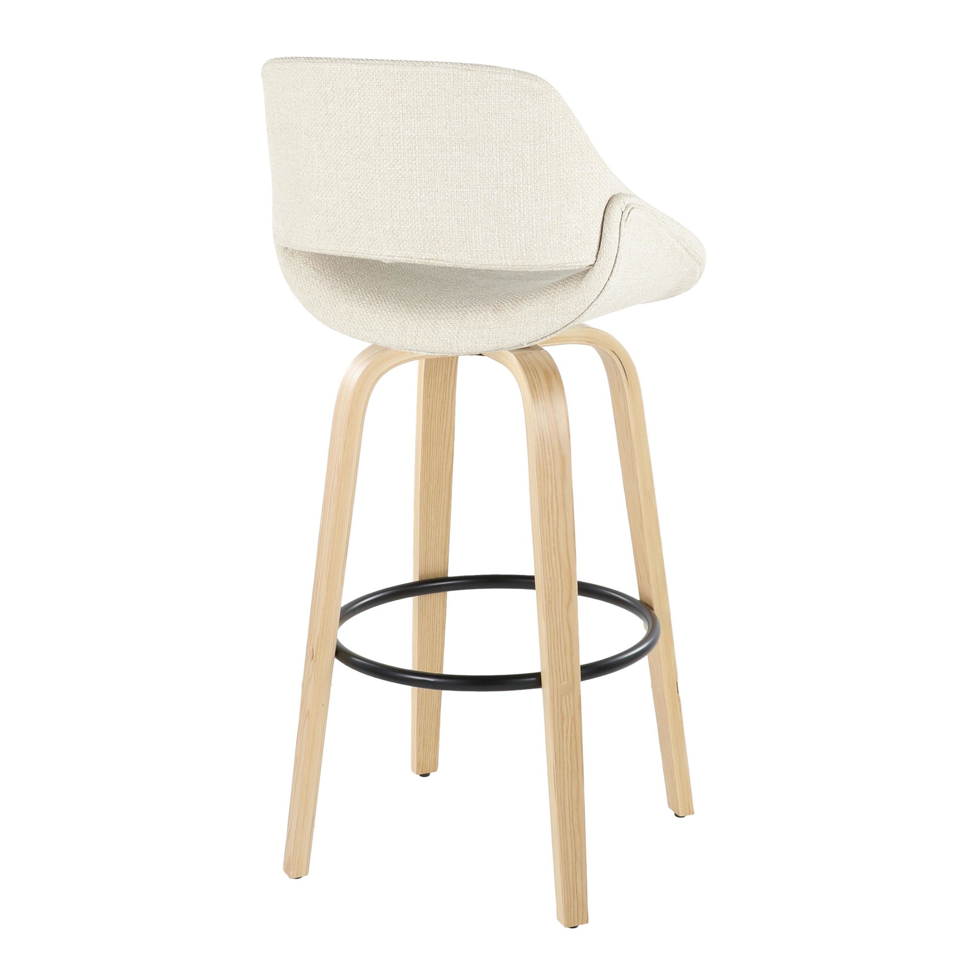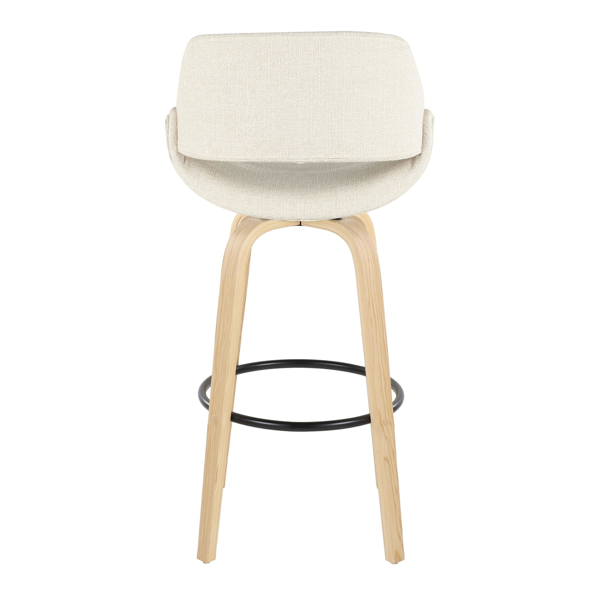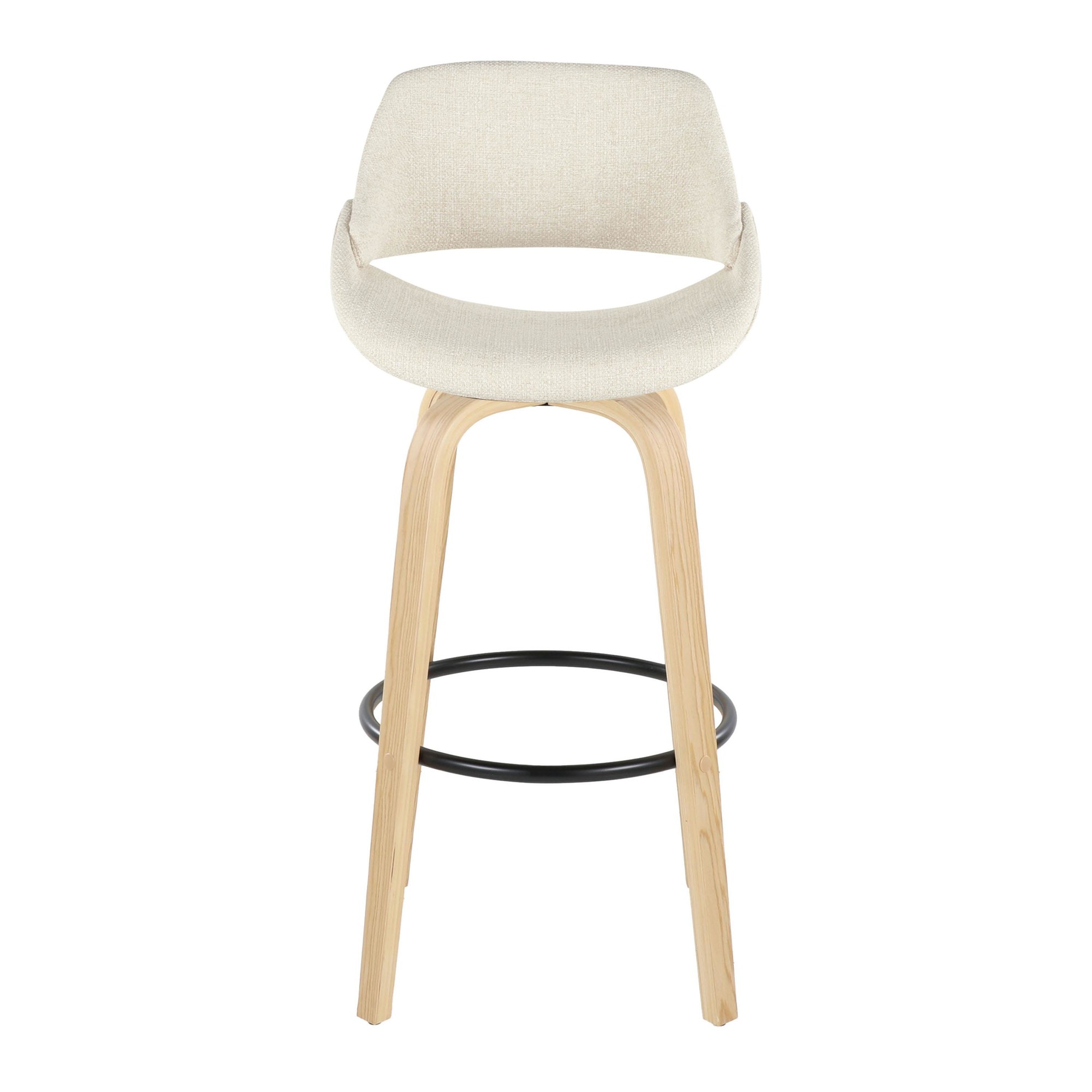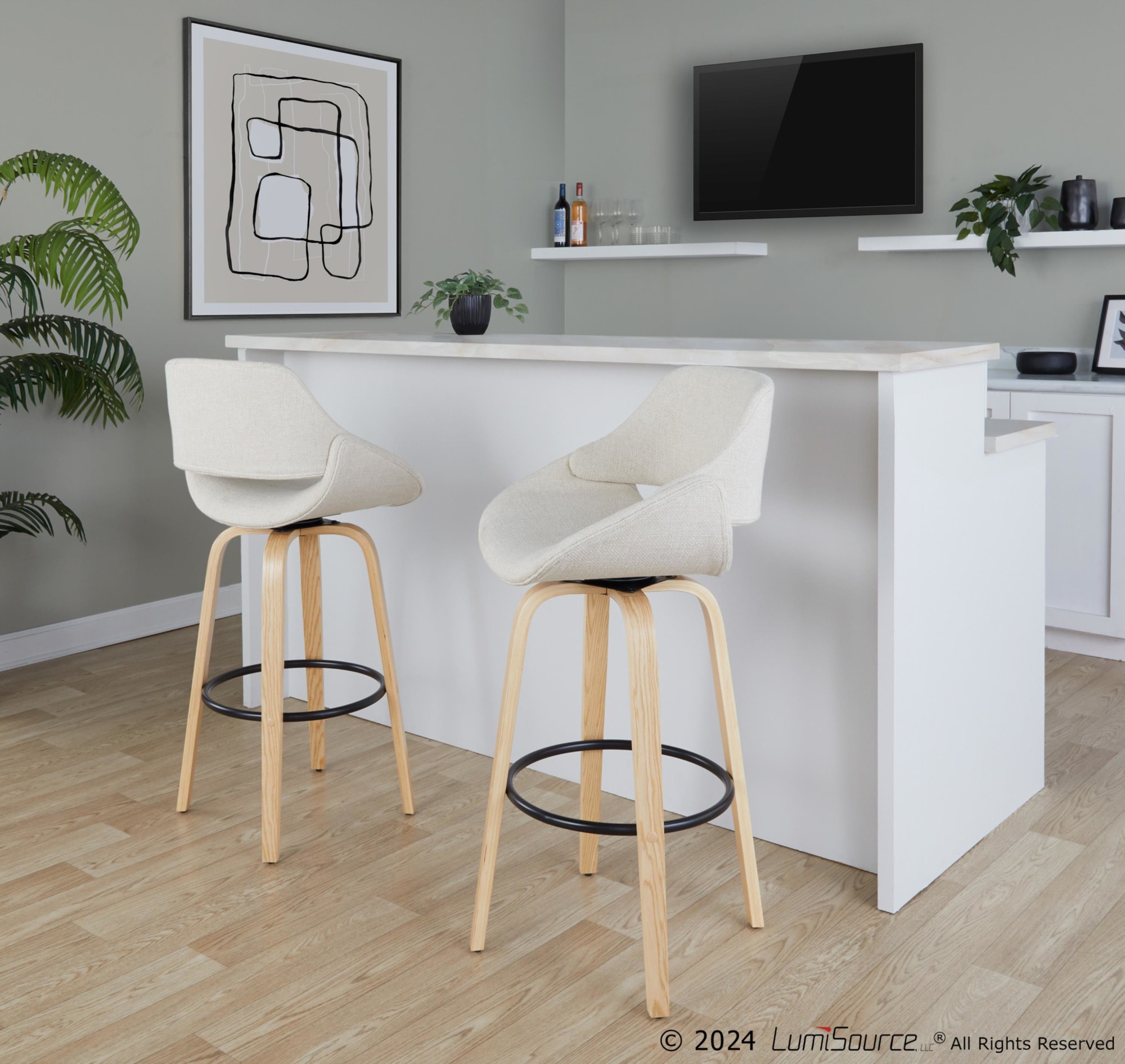 The Fabrico 30 Cream Swivel Barstools invite you to sit back and relax. These barstools feature a wide, welcoming seat, a curved back, and a comfortable, contoured upholstered seat. The flared wood swivel legs add to the stylish yet comfortable design. Enjoy the 360-degree swivel and the convenience of a round metal footrest. Sold in pairs, these barstools will be a welcome addition to your space.