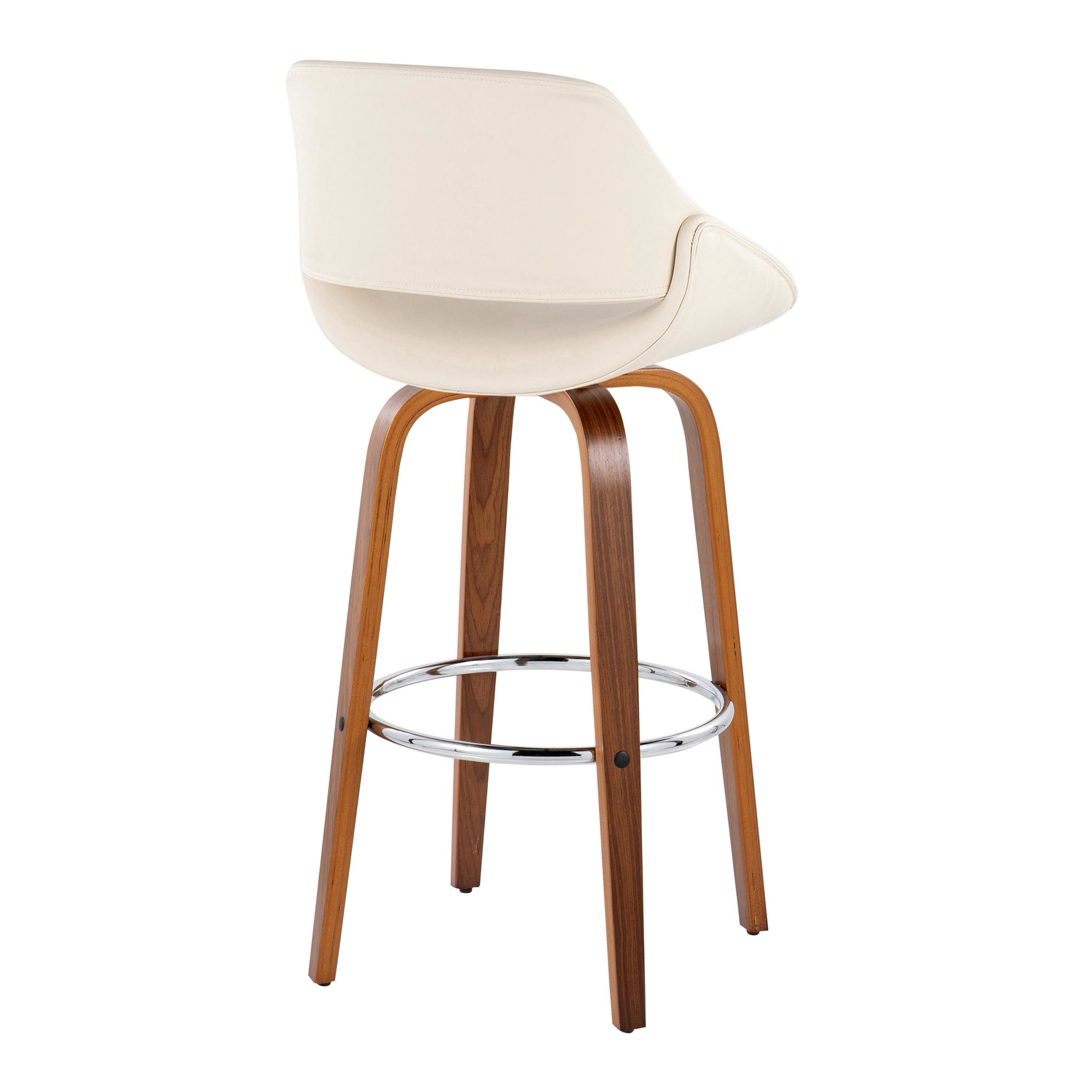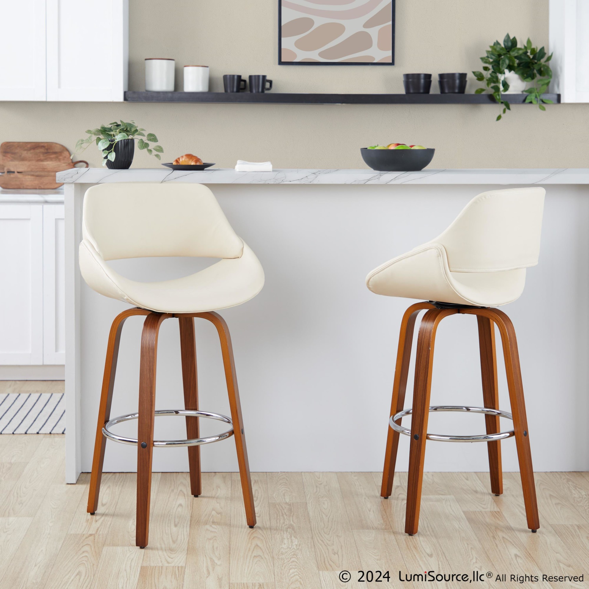 Fabrico 30 Mid-Century Cream Faux Leather Swivel Barstool (Set of 2)