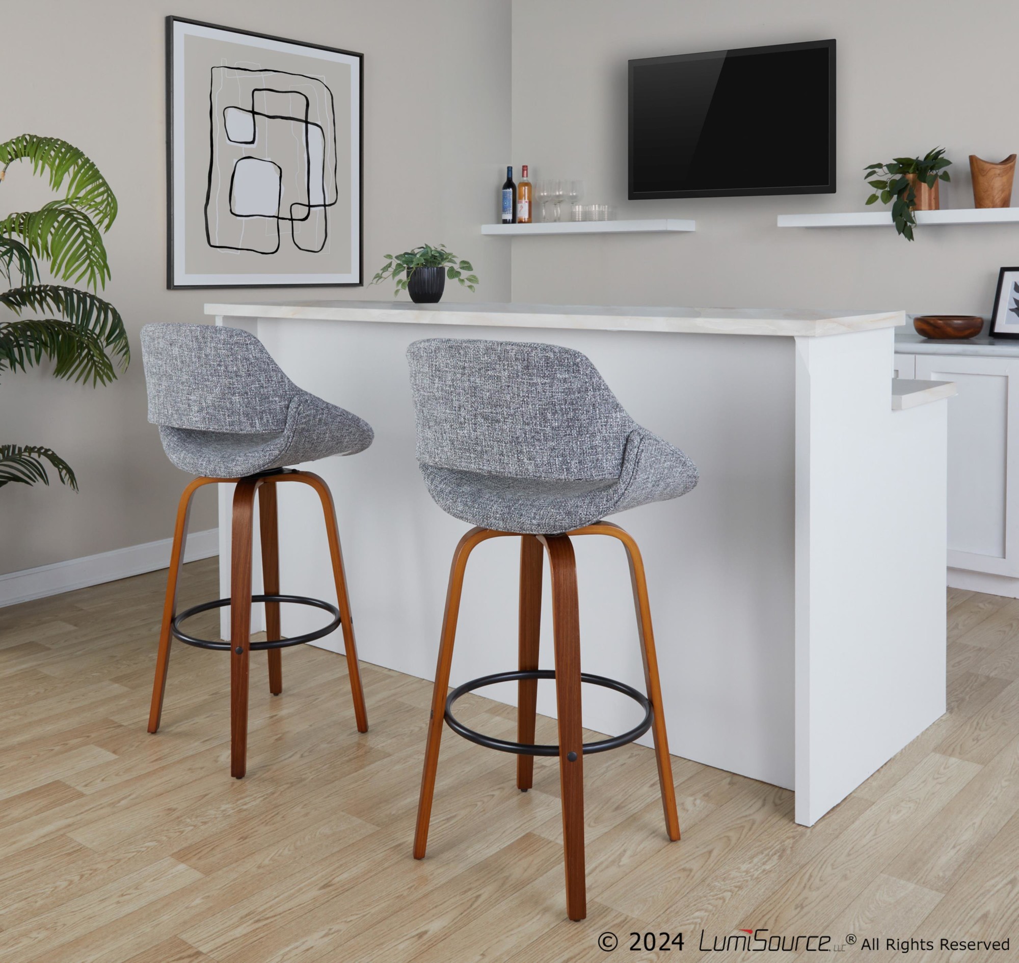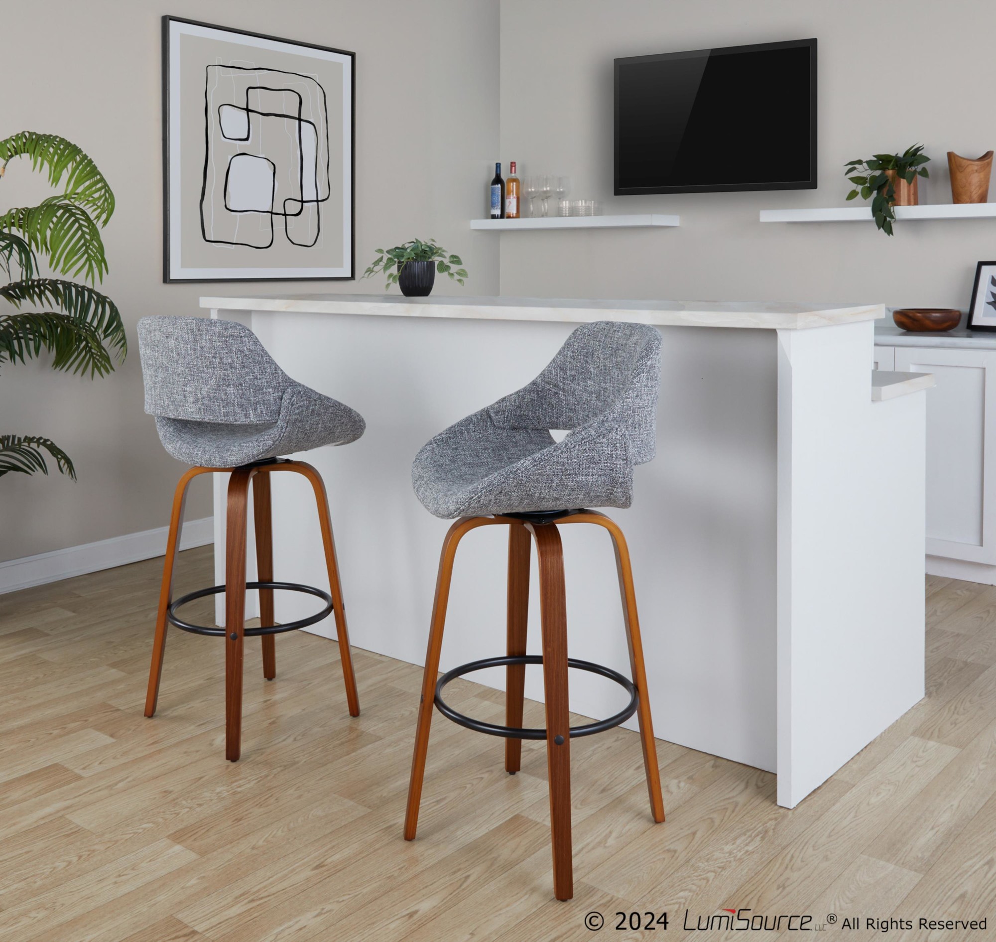 Fabrico 30 Mid-Century Grey Swivel Barstools (Set of 2)