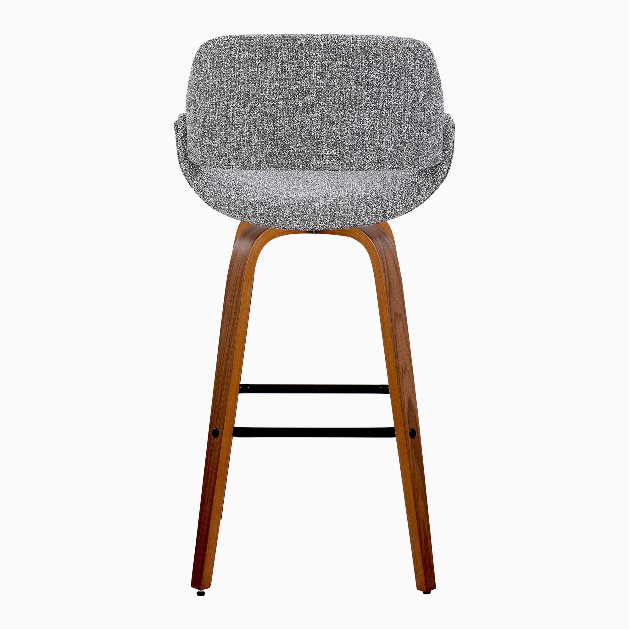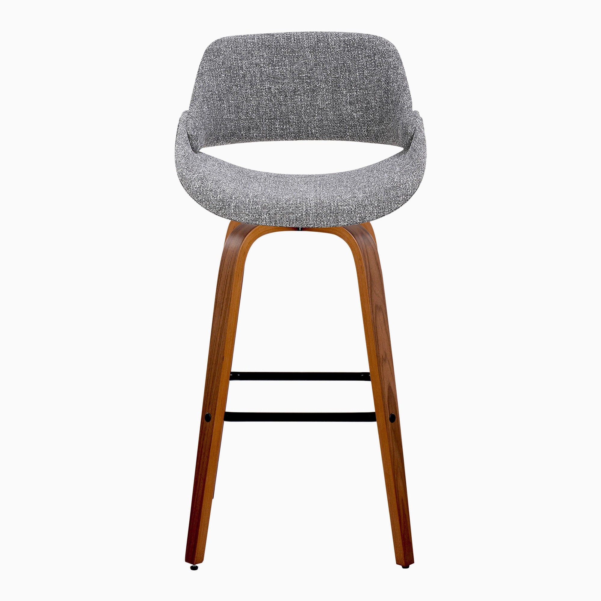 The Fabrico 30 Mid-Century Modern Grey Swivel Barstools invite you to sit back and relax. The curved back and contoured upholstered seat offer a comfortable and stylish design. The flared wood swivel legs add to the mid-century modern aesthetic. Get ready to upgrade your man cave!