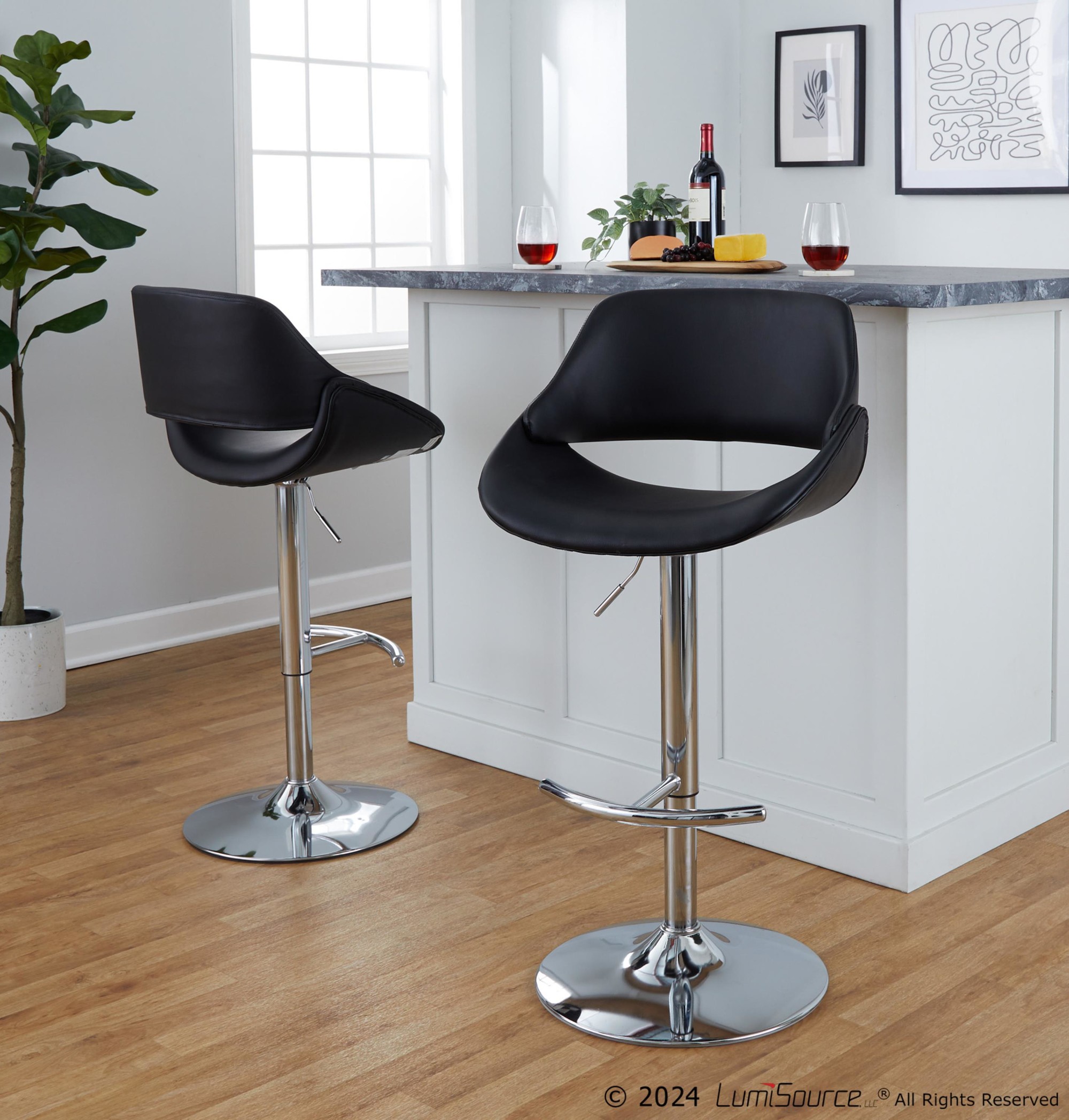 The Fabrico Adjustable Bar Stools invite you to sit back and relax! These contemporary bar stools feature a wide, welcoming seat with a curved back and contoured upholstered seat. The adjustable chrome base adds to the stylish and comfortable design, making it the perfect addition to your space.