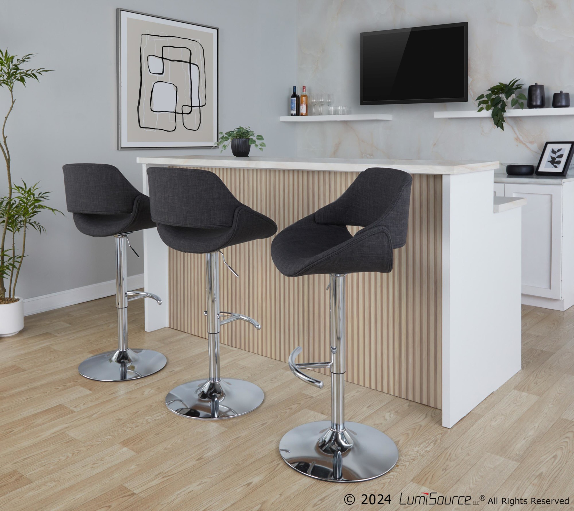 The Fabrico Adjustable Barstools invite you to sit back and relax. Their curved backs and contoured, upholstered seats, combined with an adjustable metal base, add stylish comfort to any space. These bar stools are the perfect addition to your man cave, offering both a contemporary design and relaxing support. Sold in pairs.