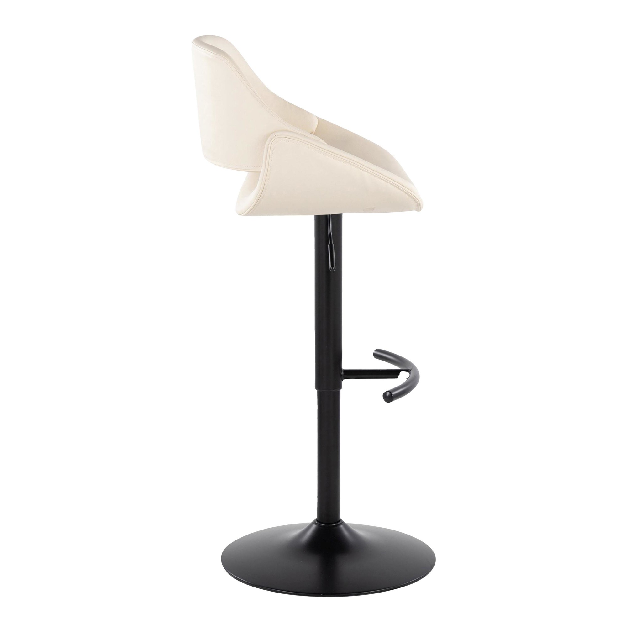 Transform your man cave with the Fabrico Barstool! This contemporary stool features a wide, welcoming seat with stylish cream faux leather upholstery for ultimate comfort. The curved back provides excellent support. With its adjustable height and 360-degree swivel, you’ll always find the perfect position. The sturdy black metal base includes a rounded T footrest for added relaxation. Each set includes two bar stools, perfect for sharing a drink with a buddy. Assembly Required: Yes. Product Specs: 19″L x 21.5″W x 36.25-44.75″H. Weight Limit: 250 lbs. (each).