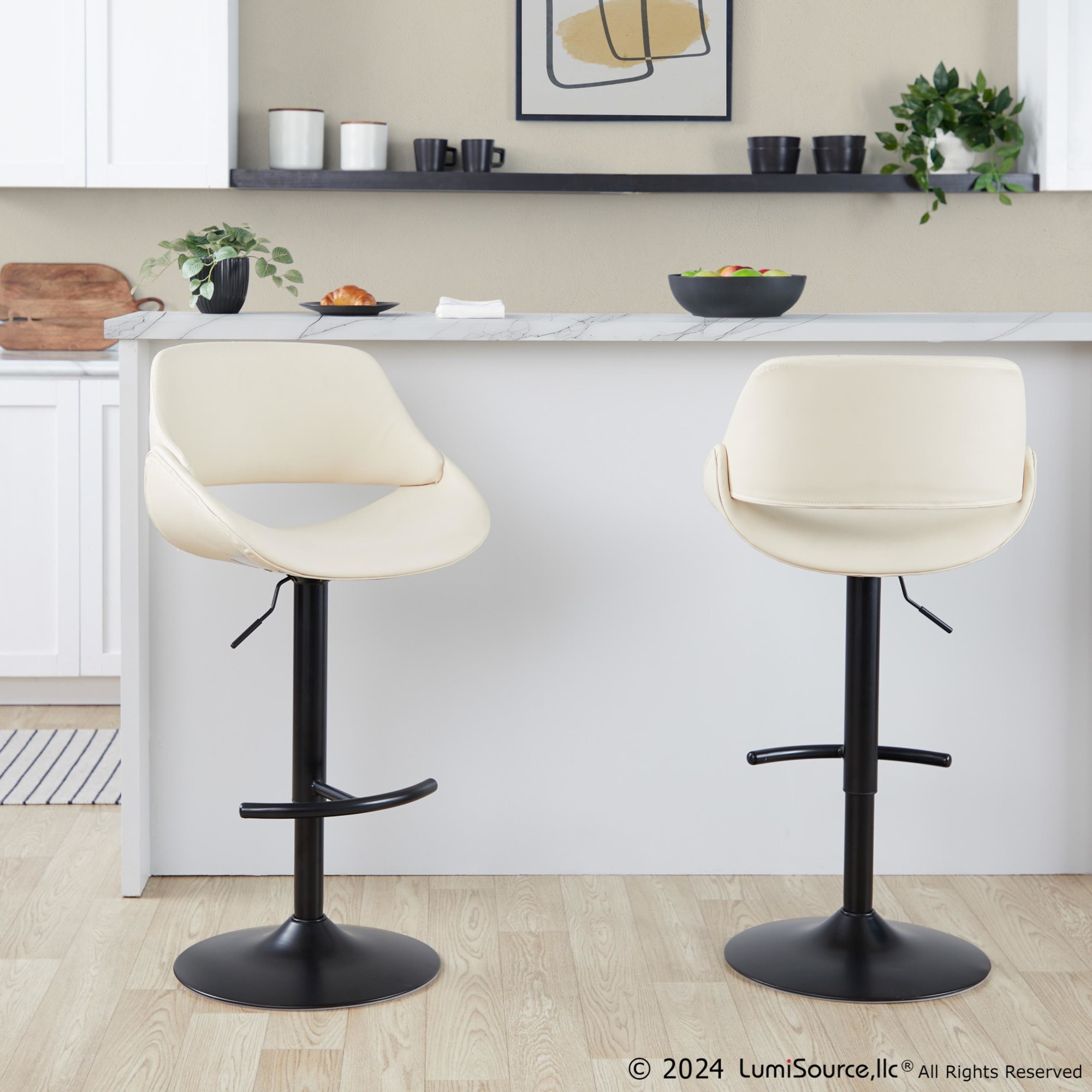 Fabrico Cream Faux Leather Black Metal Contemporary Barstool (Set of 2)