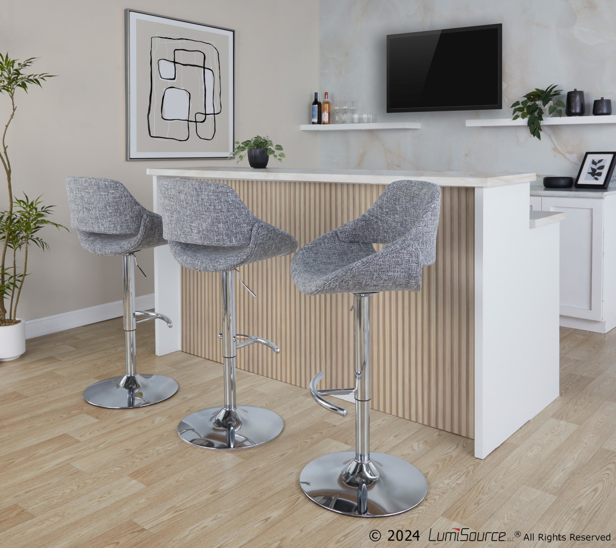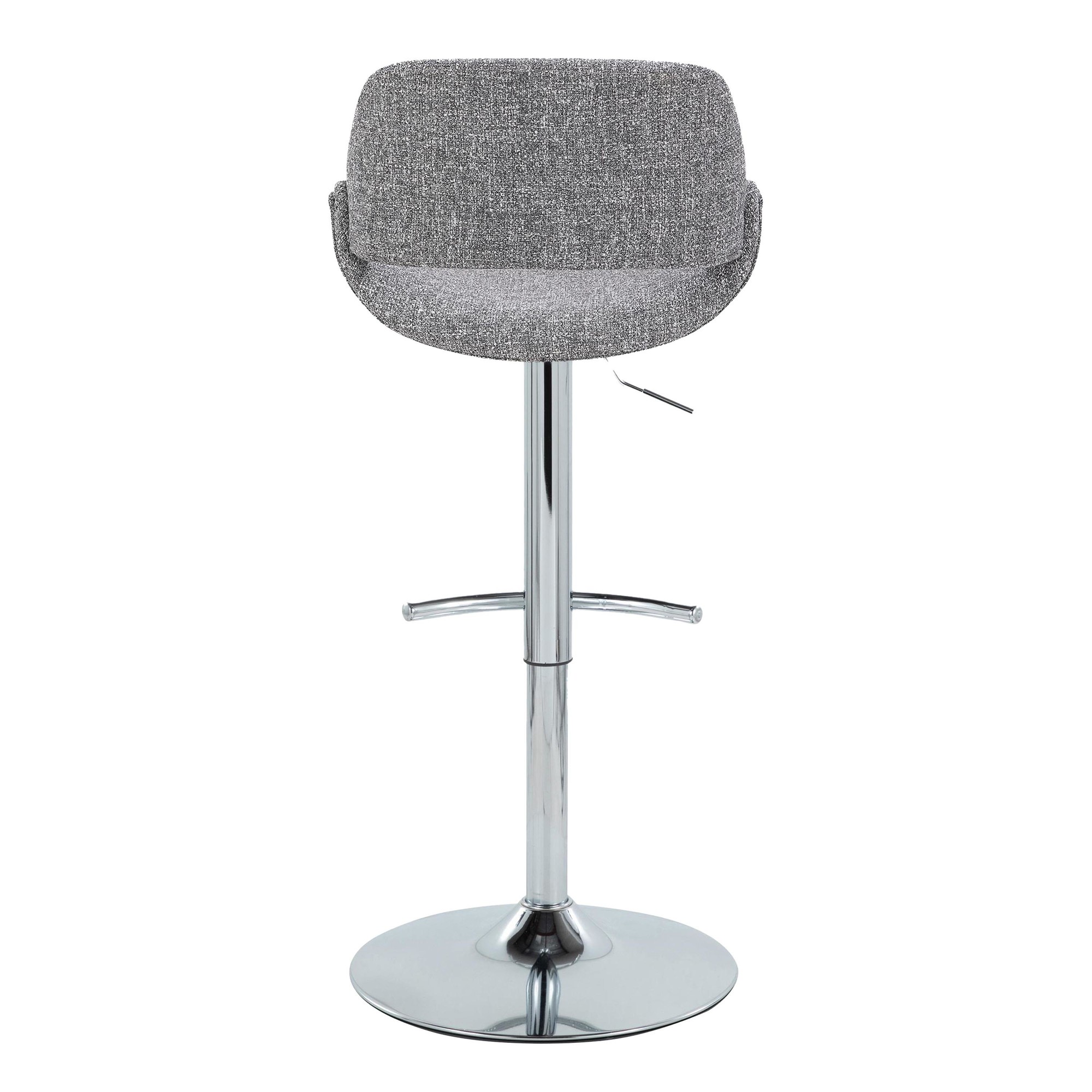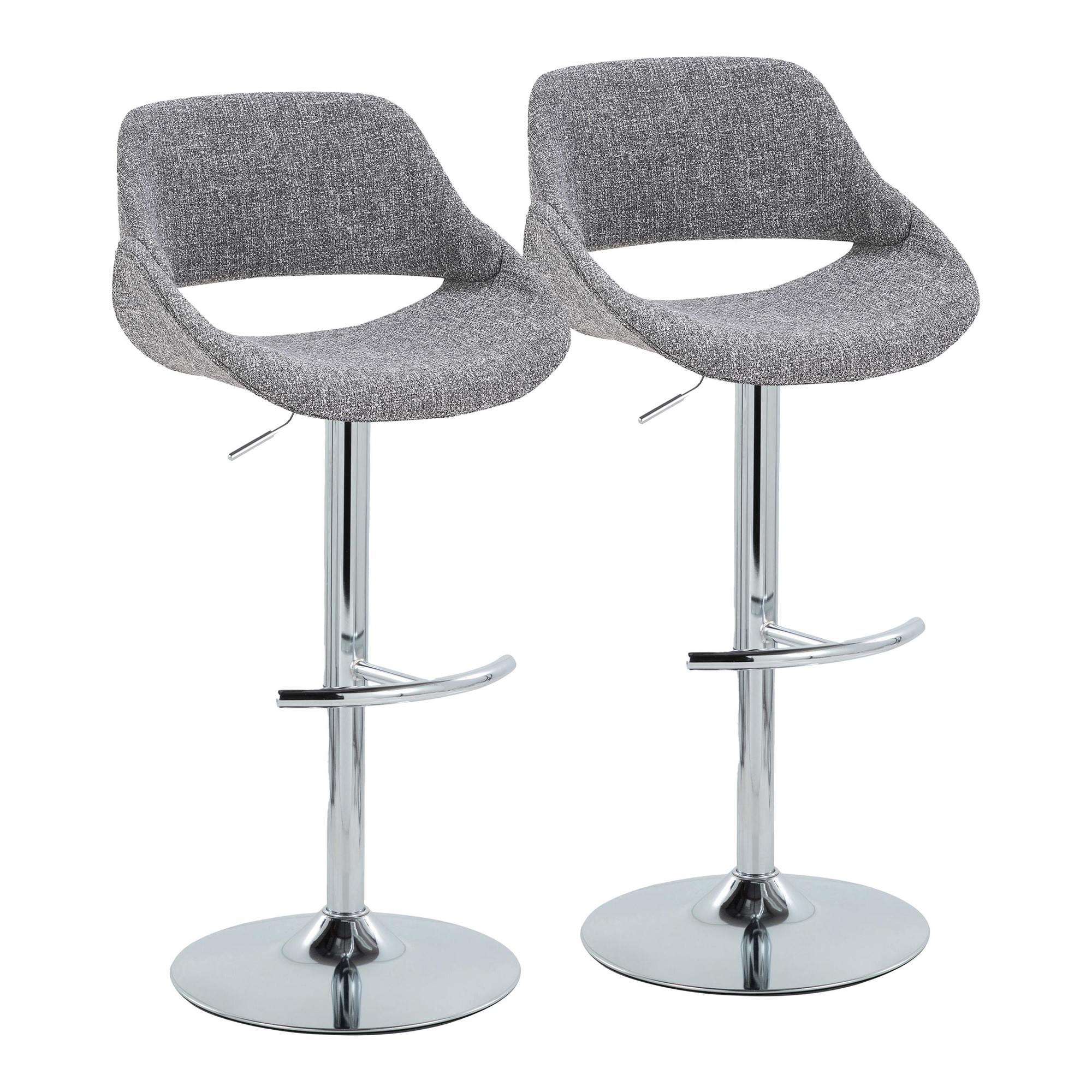 The Fabrico Grey Noise Chrome Contemporary Adjustable Barstool offers a wide and welcoming seat that beckons you to sit and relax! Enjoy the stylish and comfortable design, featuring a curved back and contoured upholstered seat, accented by an adjustable chrome metal base. These barstools are sold in pairs and will be the perfect addition to your space!