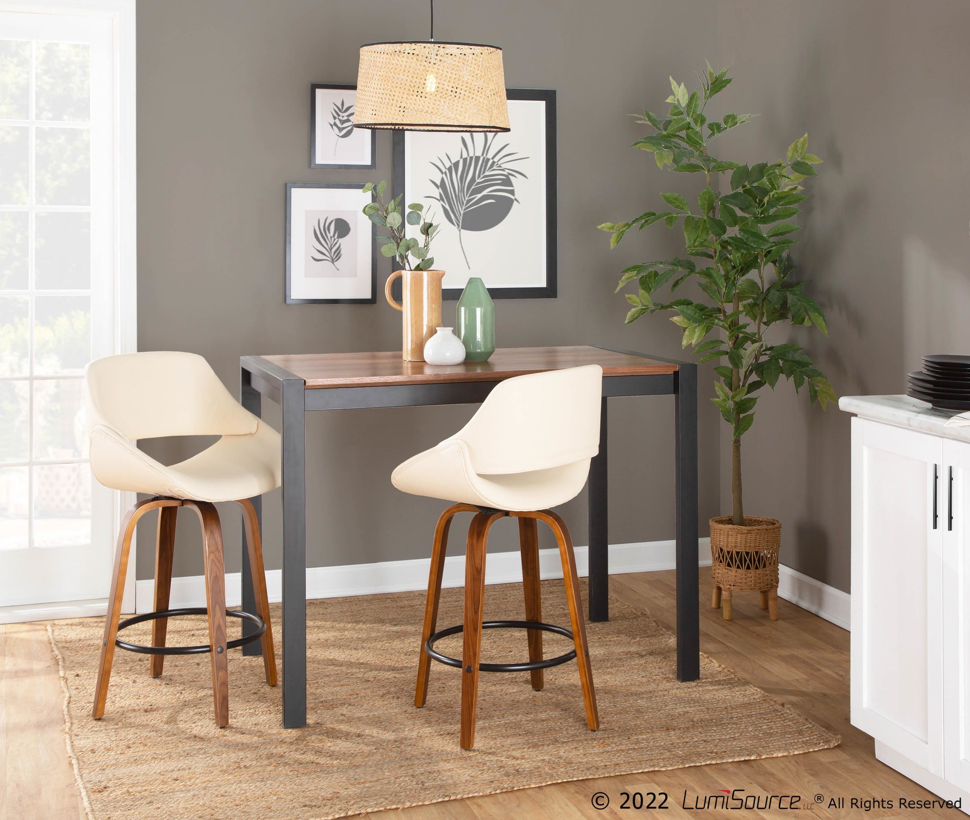 The Fabrico 26-Inch Cream Mid-Century Modern Swivel Counter Stools invite you to sit and relax. These stools combine style and comfort, making them a perfect addition to any counter area.