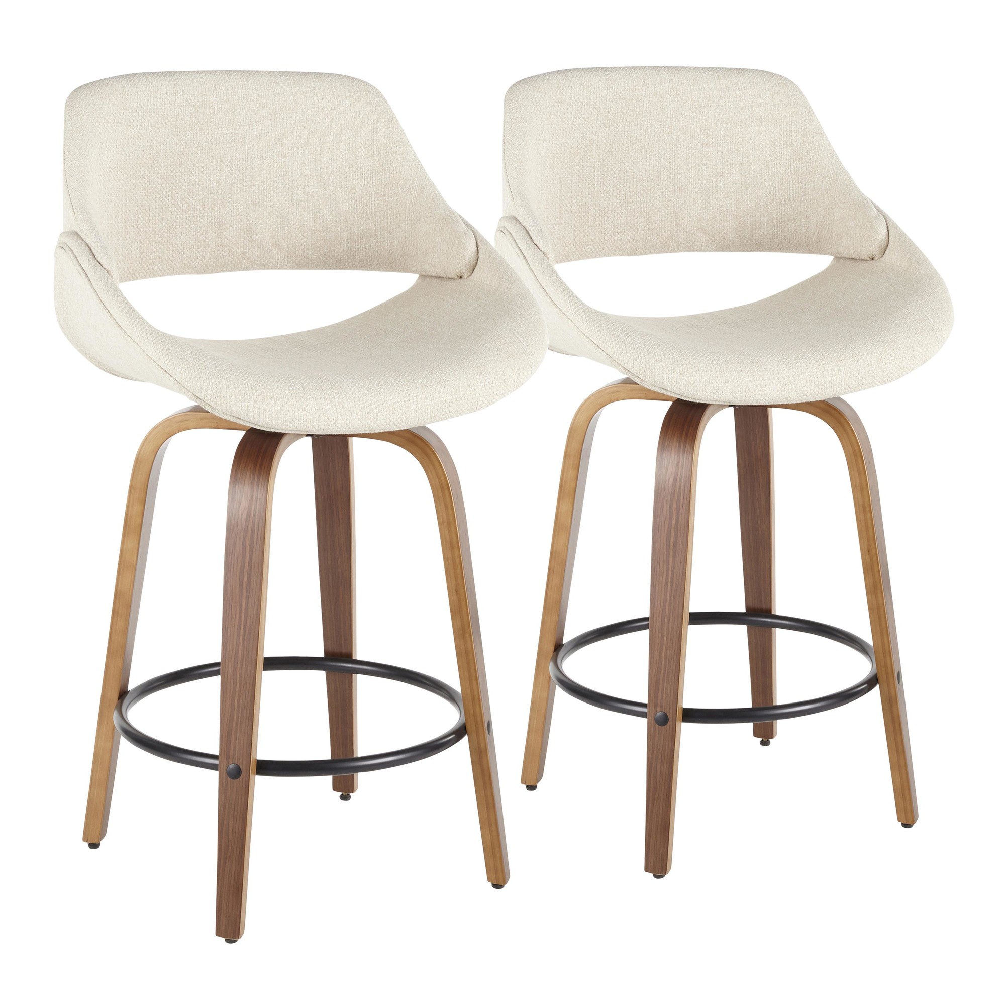 Fabrico Mid-Century Modern Swivel Counter Stools Walnut Cream (Set of 2) (Set of 2)