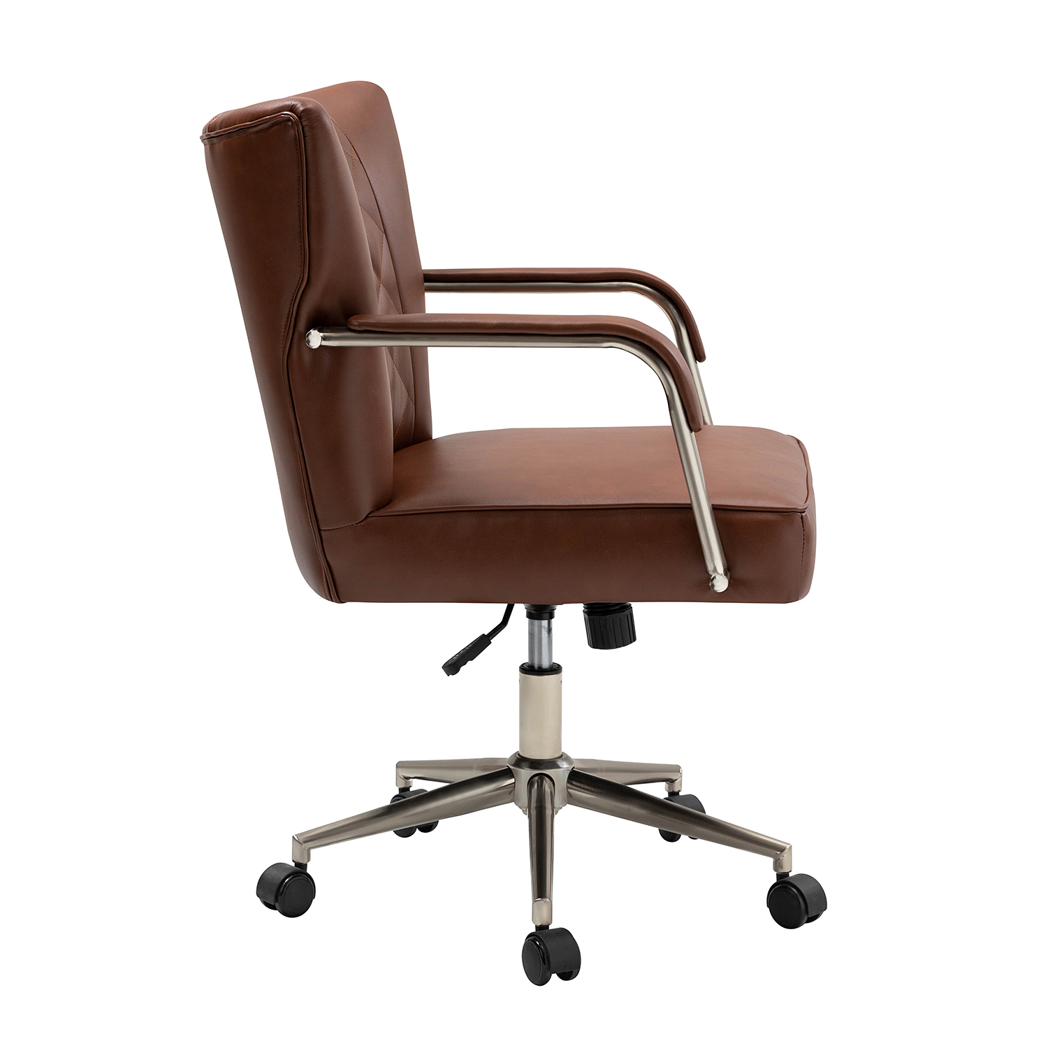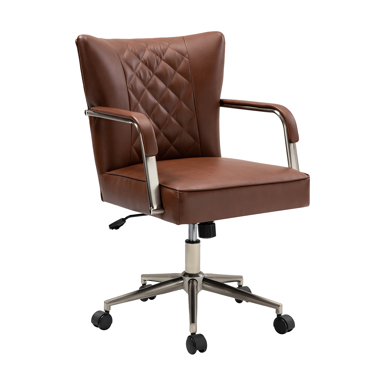 This modern task chair is a great choice for your home office or conference room. Its sleek, contemporary design features a curvaceous backrest with diamond-patterned tufted stitching, adding an elegant touch to any space.