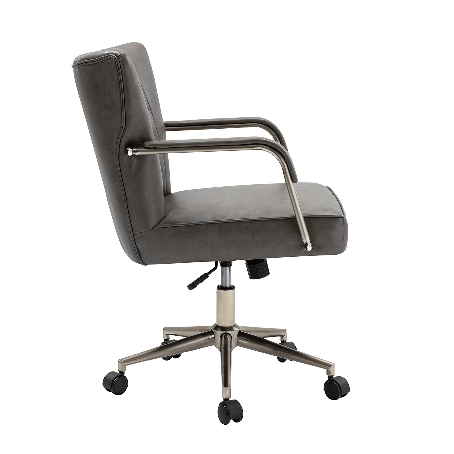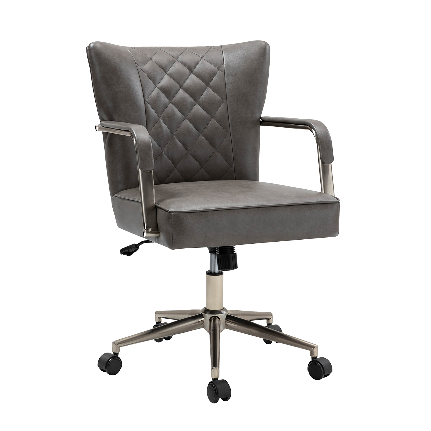 – This modern swivel task chair is ideal for home offices or conference rooms. Its sleek, contemporary design features a curvaceous backrest with a captivating diamond-patterned tufted stitching, adding an elegant touch to any space. Enjoy a well-deserved moment of relaxation with its built-in reclining function. Adjust the seat height for a perfect fit, and the 360-degree swivel allows smooth and seamless movement. The waterproof and oil-resistant vegan leather upholstery ensures easy maintenance. Experience generous support and exquisite style, enhancing traditional, transitional, vintage, and classic home styles.
