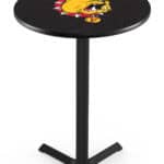 Elevate your bar, game room, or man cave with this premium 36-inch pub table. Featuring a sleek design and exceptional durability, this table is built to impress and provide a stable surface for all your entertainment needs. The table boasts a vibrant, sublimated laminate top that resists scratches, ensuring long-lasting quality. Its sturdy cross base, powder-coated with a black wrinkle finish, adds a rich and modern aesthetic while offering unmatched stability. Adjustable feet ensure it accommodates any floor surface with ease.