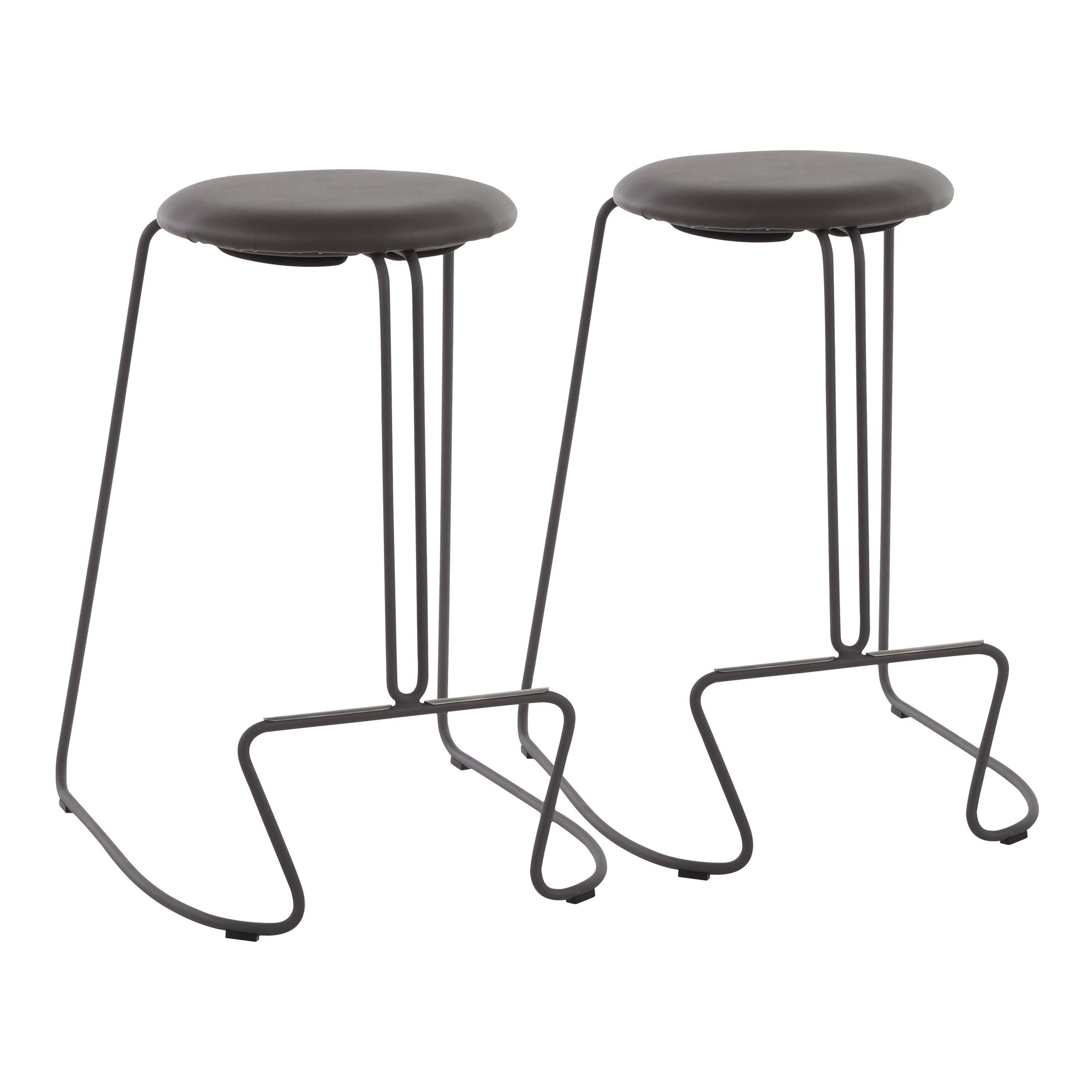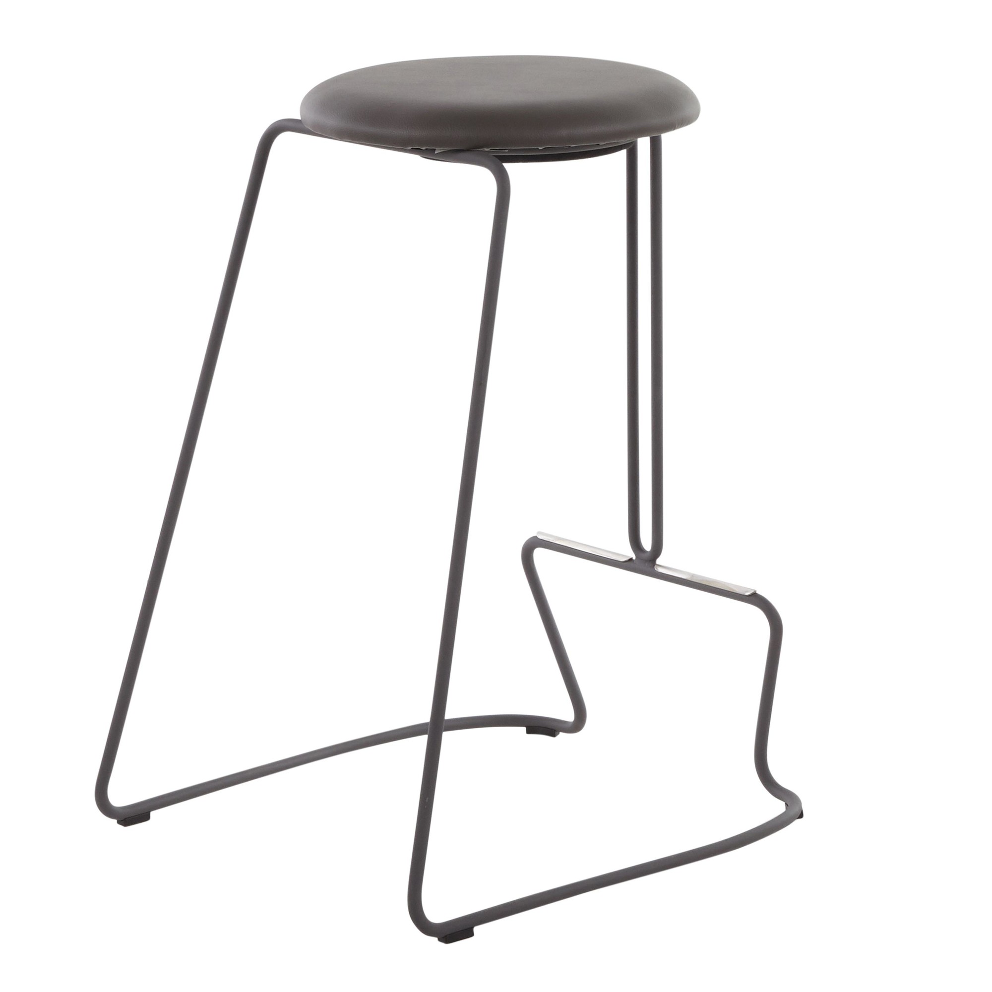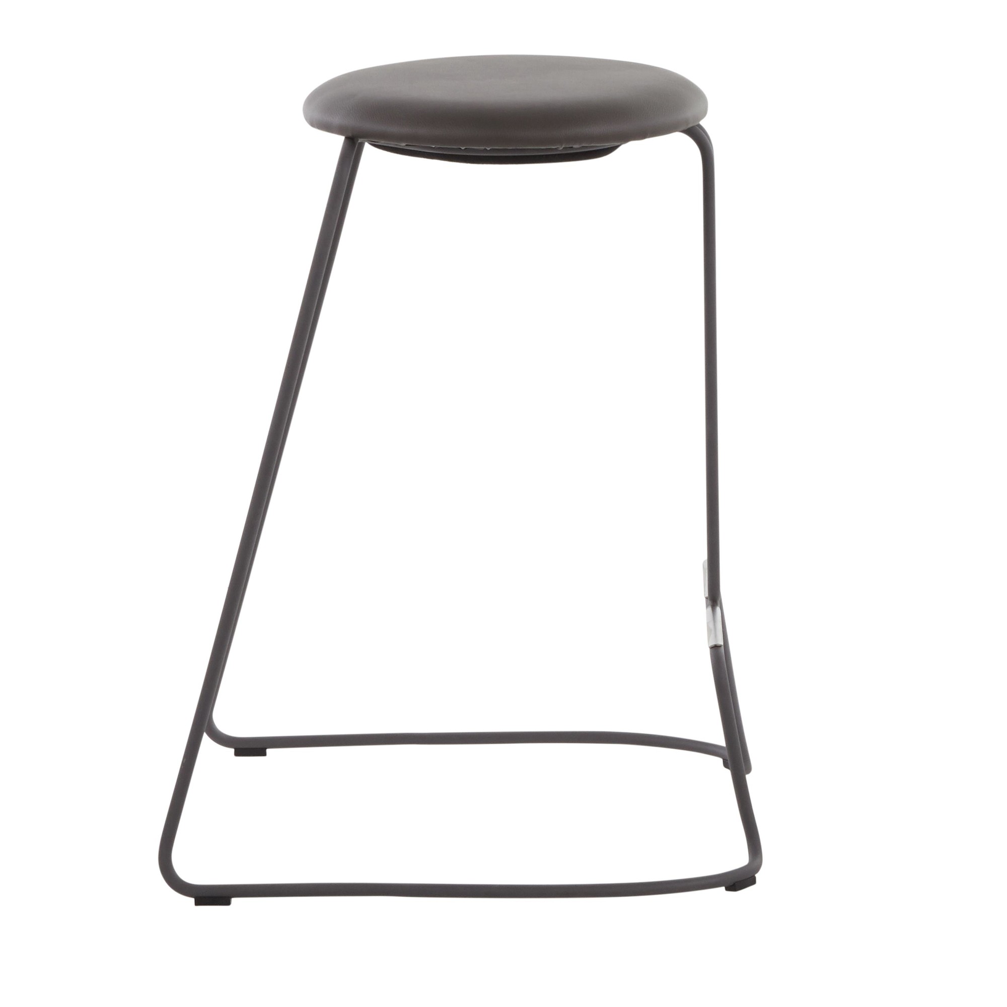 The Finn Grey Faux Leather Contemporary Counter Stools will be the statement piece of your dining room or bar area. This ultra-modern stool features an open-frame, backless design, providing a sleek and minimalist look. The padded faux leather seat offers comfort, while the unique metal footrest adds both style and support. Sold in pairs, these counter stools are a perfect addition to any contemporary space.