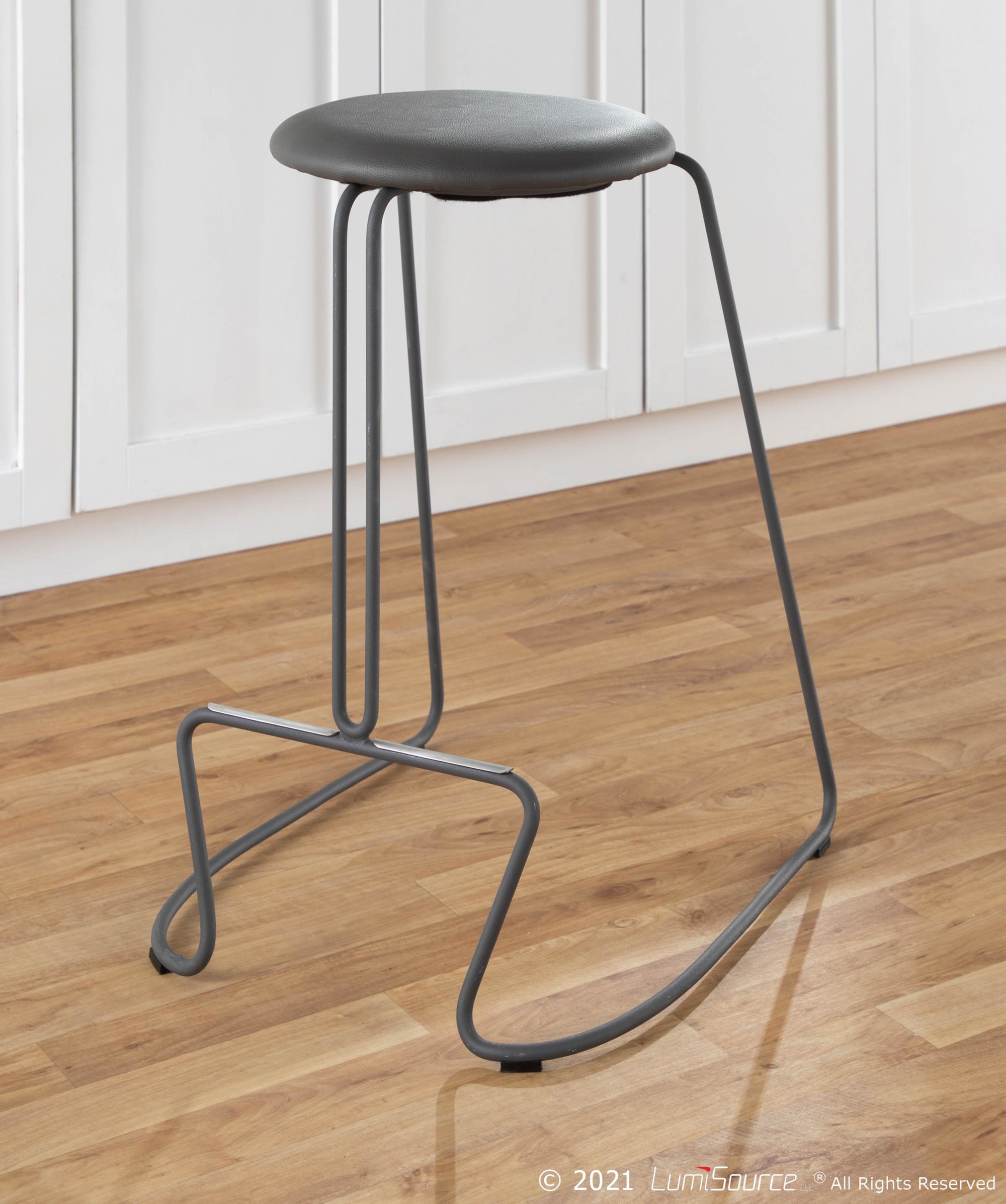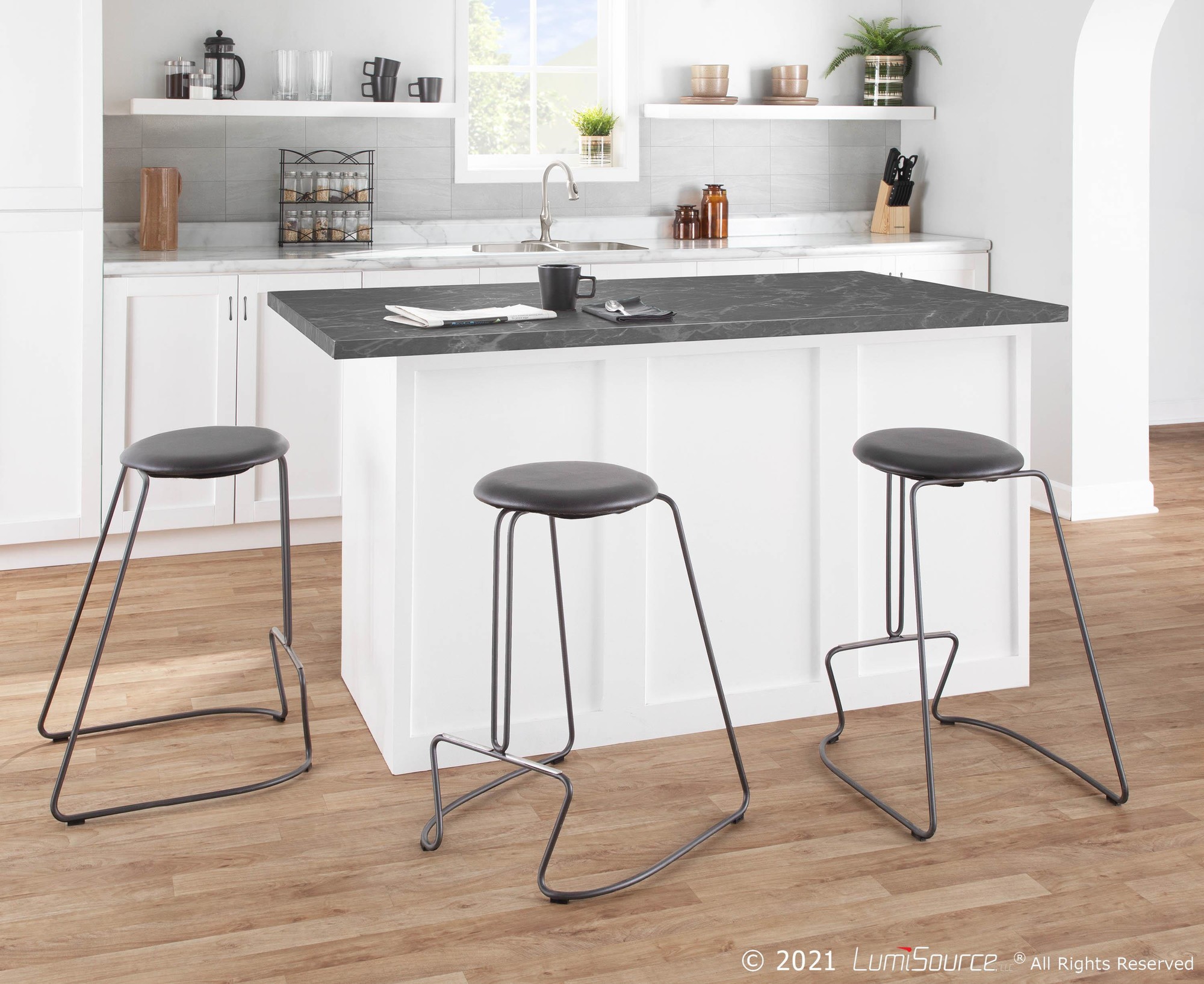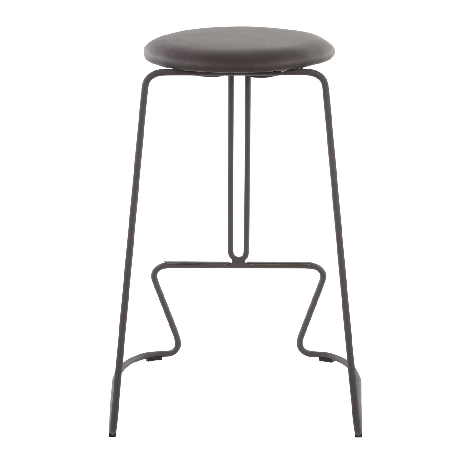 The Finn Grey Faux Leather Contemporary Counter Stools will be the statement piece of your dining room or bar area. This ultra-modern stool features an open-frame, backless design, providing a sleek and minimalist look. The padded faux leather seat offers comfort, while the unique metal footrest adds both style and support. Sold in pairs, these counter stools are a perfect addition to any contemporary space.