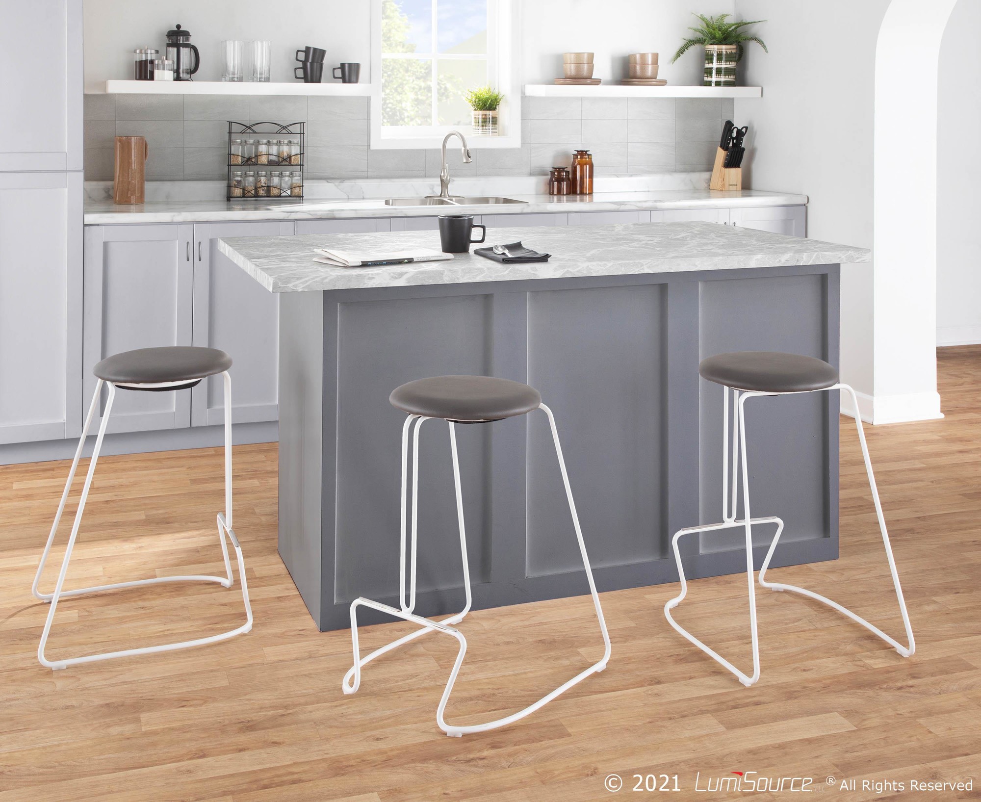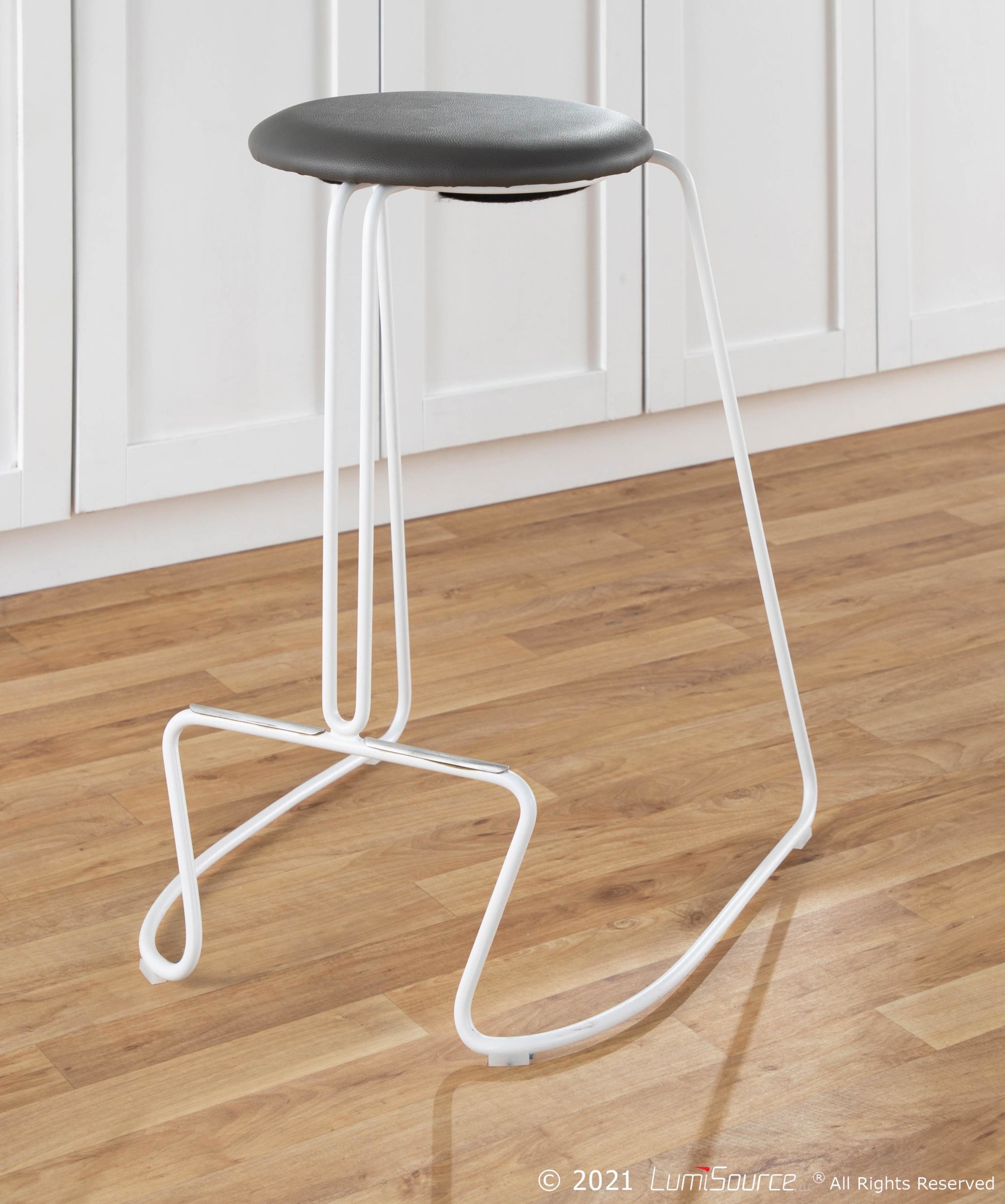 The Finn Counter Stool is an ultra-modern statement piece perfect for your dining room or bar area. Its open-frame, backless design features a comfortable padded seat and a unique metal footrest. Sold in pairs, these stools offer contemporary styling and sturdy construction.