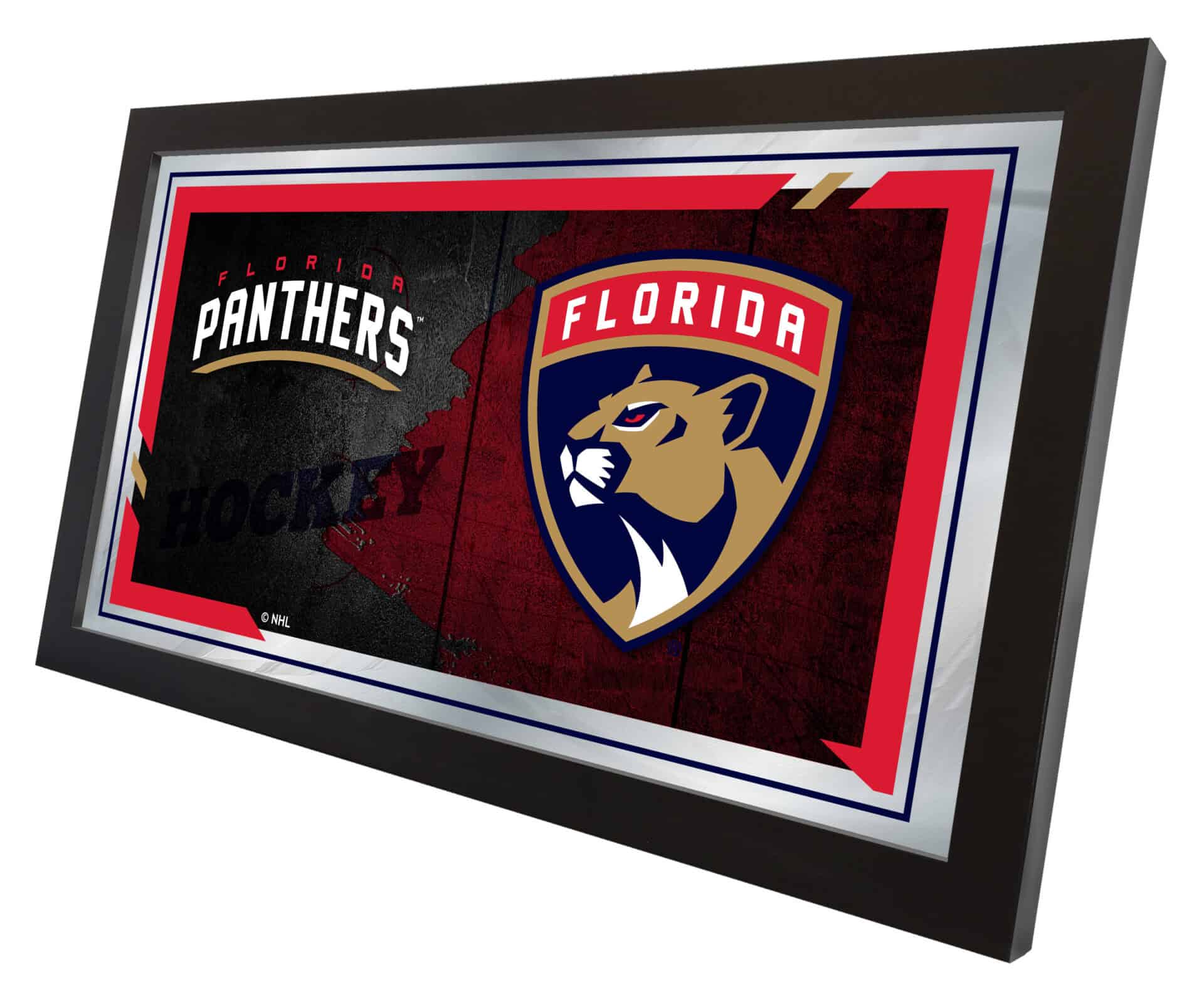 The perfect way to show your team pride, the Florida Panthers 15×26 Hockey Collector Mirror displays your team’s symbols with a style that fits any setting. With its simple yet elegant design, vibrant colors burst through the 1/8″ thick glass, highlighted by mirrored accents. Framed with a black, 1 1/4″ wrapped wood frame and equipped with saw-tooth hangers, this mirror measures 15″(H) x 26″(W) and is ideal for your office, garage, or any room in your home. Whether purchasing as a gift for a recent grad, a sports superfan, or for yourself, you can take satisfaction knowing you’re buying a quality product.