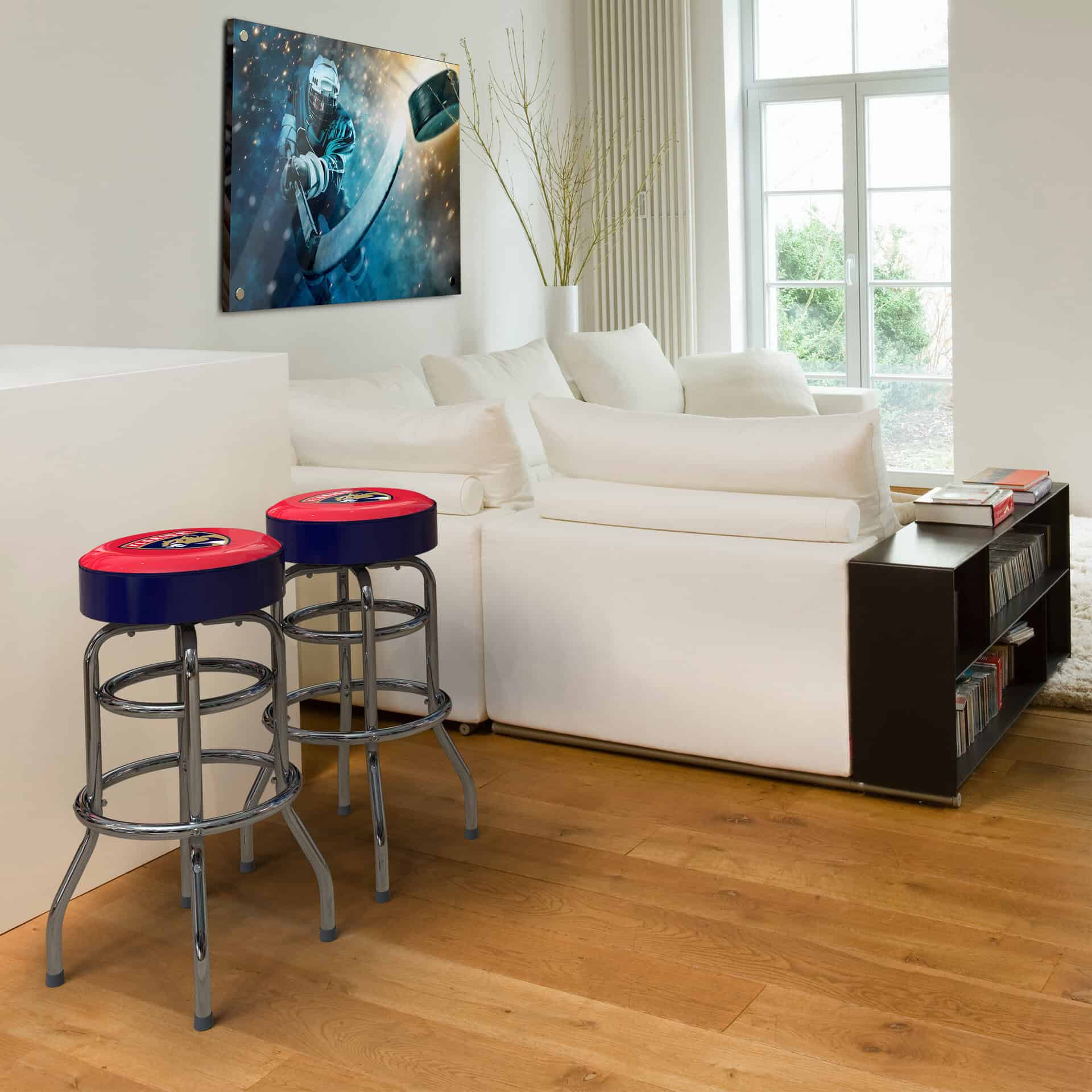 Get ready to show off your Florida Panthers pride with this commercial-grade bar stool! This isn’t just a seat; it’s a statement piece for your fan cave, game room, or bar area. Built to last and emblazoned with your team’s colors and logos, it’s the perfect way to support your Panthers in style and comfort. Enjoy years of use with its durable construction and eye-catching design.