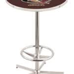 Enhance your bar, game room, or man cave with this stylish and durable 42-inch pub table featuring a 36-inch top and a sleek chrome finish. This high-quality table is designed for sports enthusiasts who value both functionality and aesthetics. Its vibrant, full-color, scratch-resistant laminate top paired with a sturdy star base ensures long-lasting performance and elegance. Easy assembly and adjustable floor glides make it a practical and reliable addition to any space.