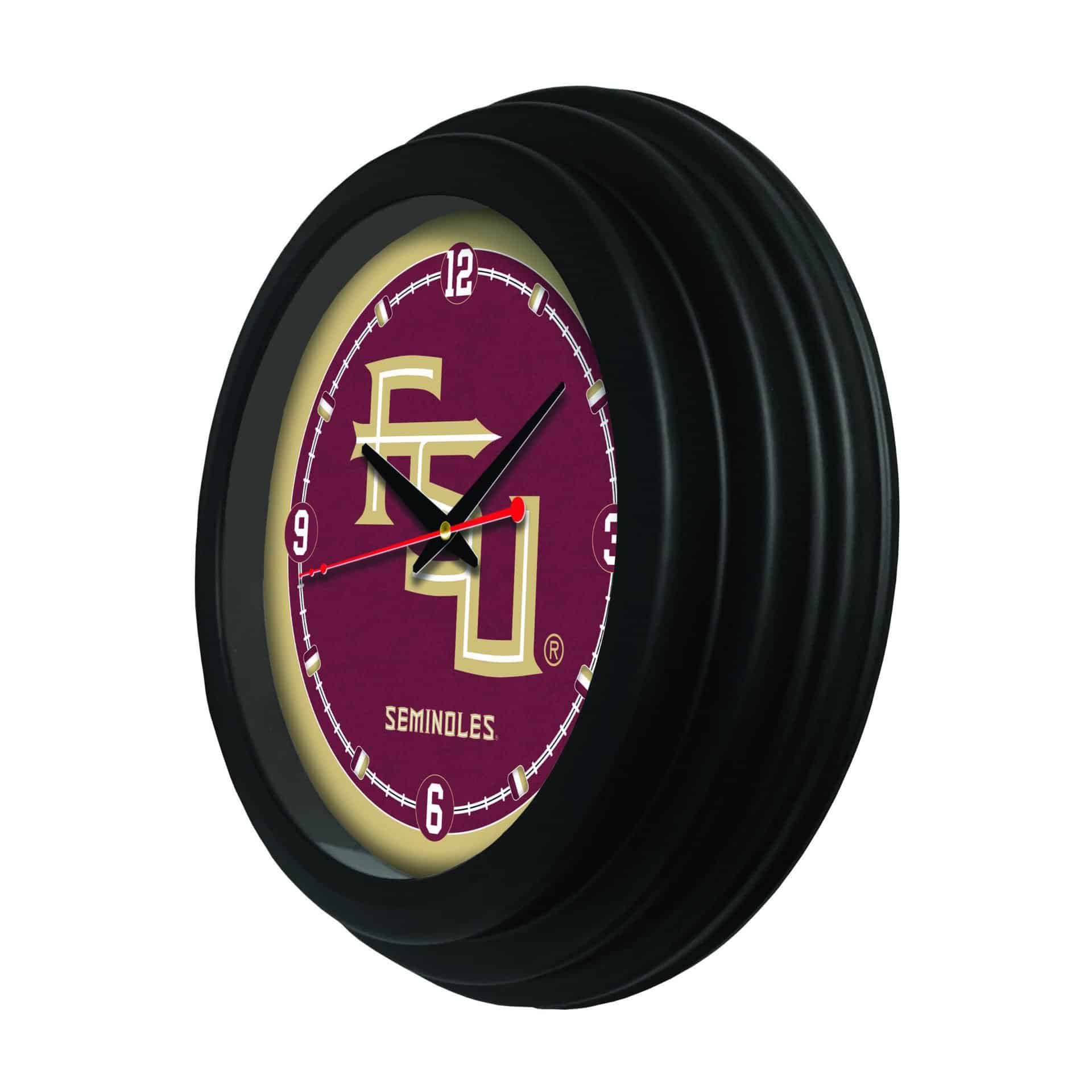 This black cased 15-Inch Traditional Logo Clock is the perfect way to show your school pride. Featuring vibrant, full-color digitally printed graphics protected behind a glass lens face, this clock combines style with functionality. Accurate quartz movement ensures precise timekeeping, powered by a single AA battery (not included). The recessed hanger allows the clock to hang flat against the wall, providing a clean and finished look. Whether for a gift or personal use, this clock is a great addition to any space.