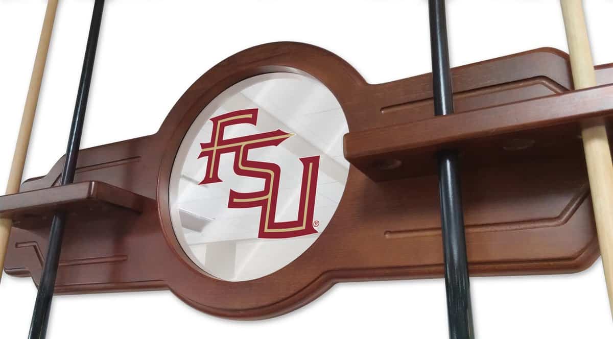 Elevate your game room with this premium Florida State (Script) Navajo Logo Cue Rack, designed to showcase your team spirit while providing a sophisticated storage solution for your pool cues. This expertly crafted cue rack combines functionality with stylish design, offering a premium display for pool enthusiasts and Florida State fans alike.