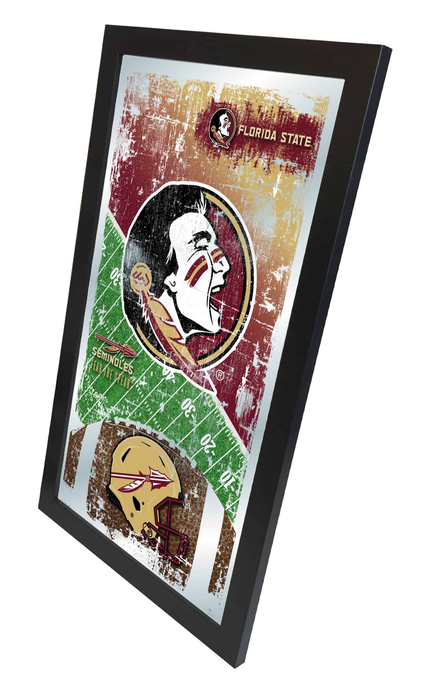 Show your school pride with this Official Licensed Football Mirror. Its simple yet elegant design features vibrant colors that burst through the 1/8″ thick glass, enhanced by mirrored accents. The mirror is framed with a black, 1 1/4″ wrapped wood frame and comes equipped with dual saw tooth hangers for easy installation. Measuring 15″ high by 26″ wide, this mirror is perfect for your office, garage, or any room in your home. Whether you’re purchasing it as a gift for a recent graduate, a sports super fan, or for yourself, you can take satisfaction knowing you’re buying a high-quality product.