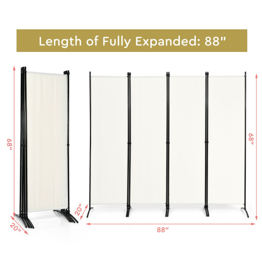 The Foldable 4-Panel Room Divider with Durable Steel Frame is a versatile and stylish addition to any space, providing privacy, blocking sunlight, or serving as a decorative piece. Crafted with a durable polyester fiber and a sturdy steel frame, this room divider is built to last. Its foldable design allows for easy storage and adaptability, making it suitable for a variety of indoor and outdoor settings, such as living rooms, patios, or offices. With its lightweight construction and user-friendly assembly, this room divider is both practical and aesthetically pleasing.