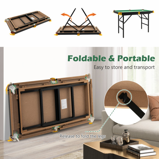 - Classic Design: Features green nylon cloth and black leather surroundings for a traditional billiard table aesthetic.
