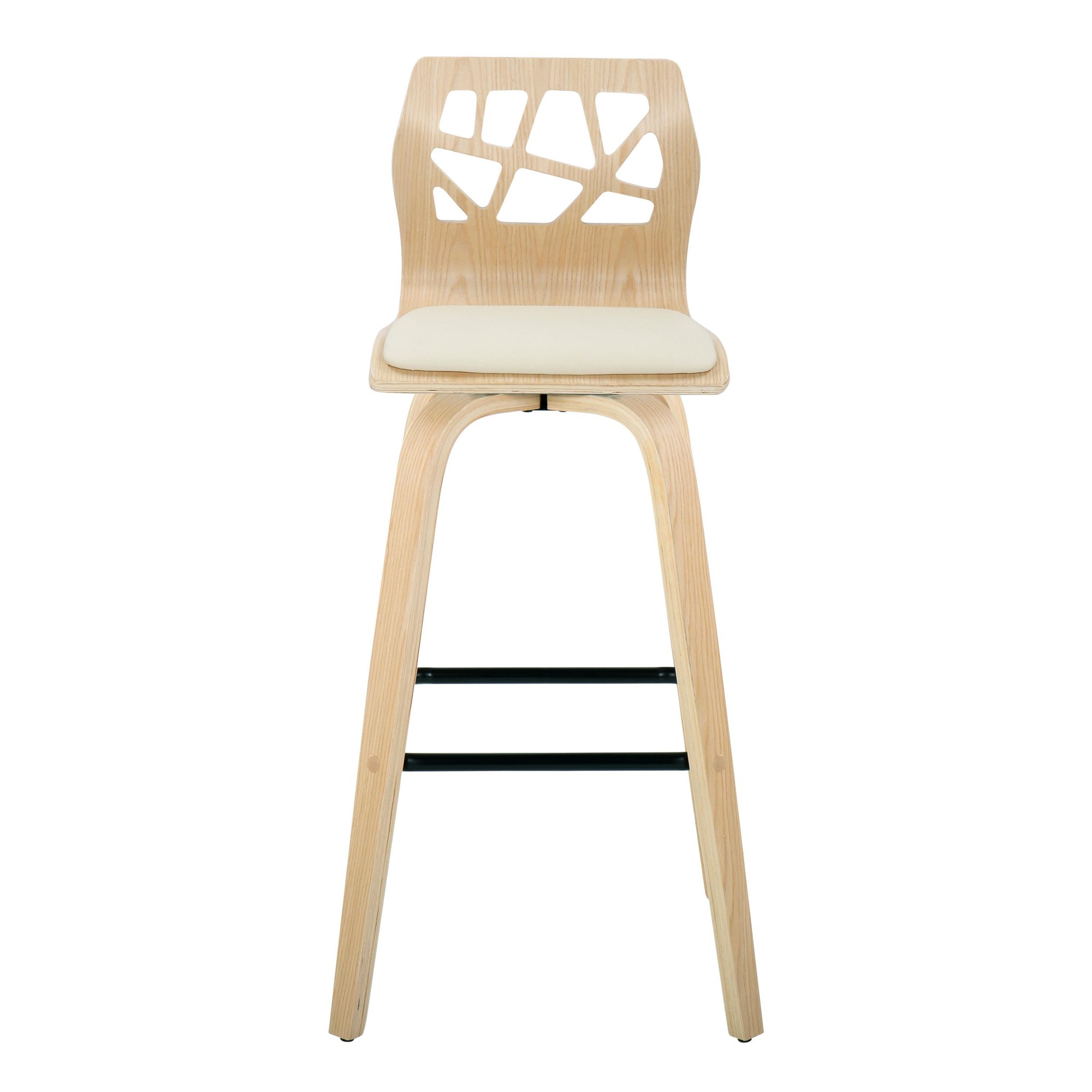 The Folia 30 Cream Swivel Contemporary Barstool adds a touch of modern style to any bar or counter area. Its curved wood frame and unique cut-out backrest design are sure to catch the eye, while the comfortable, padded swivel seat ensures a pleasant seating experience. Enjoy the convenience of a built-in footrest and the versatility of a 360-degree swivel.