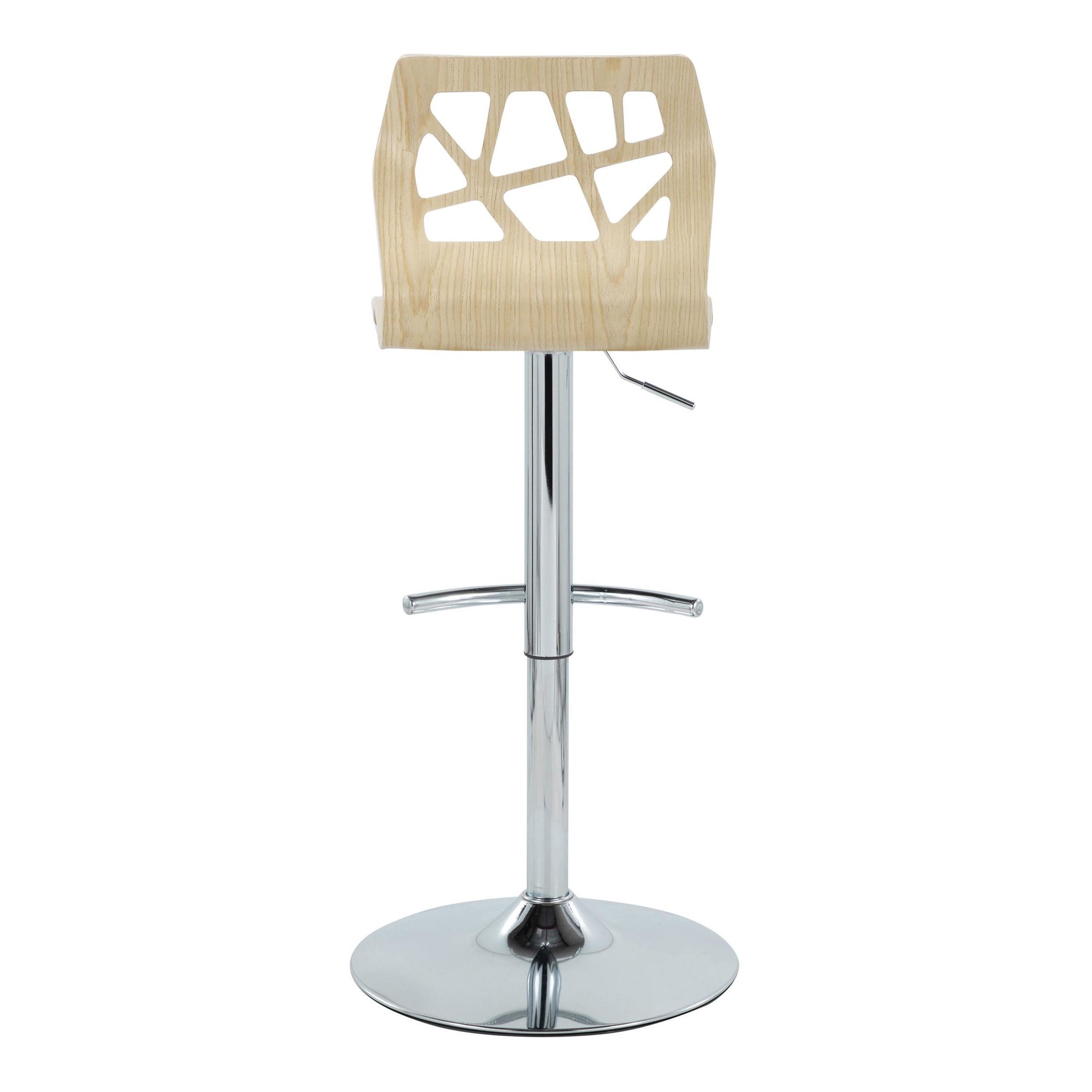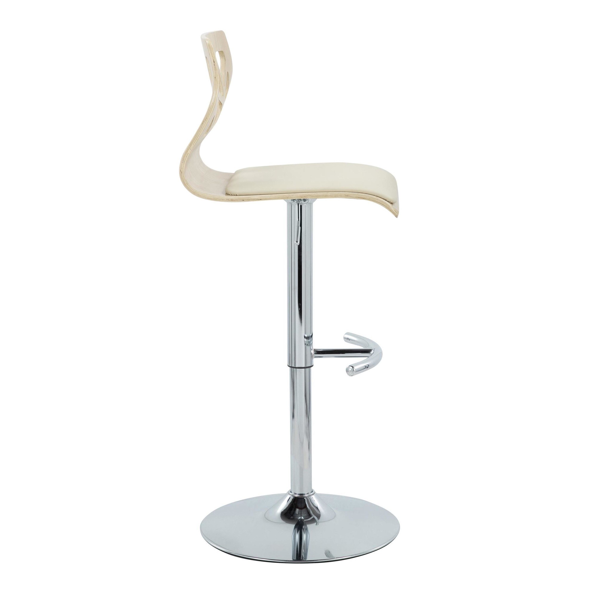 The Folia Adjustable Barstool adds a touch of contemporary style to any space. Its curved wood frame and cut-out backrest provide visual appeal, while the upholstered, padded swivel seat and built-in footrest ensure comfort. This adjustable stool is perfect for any bar or counter area.