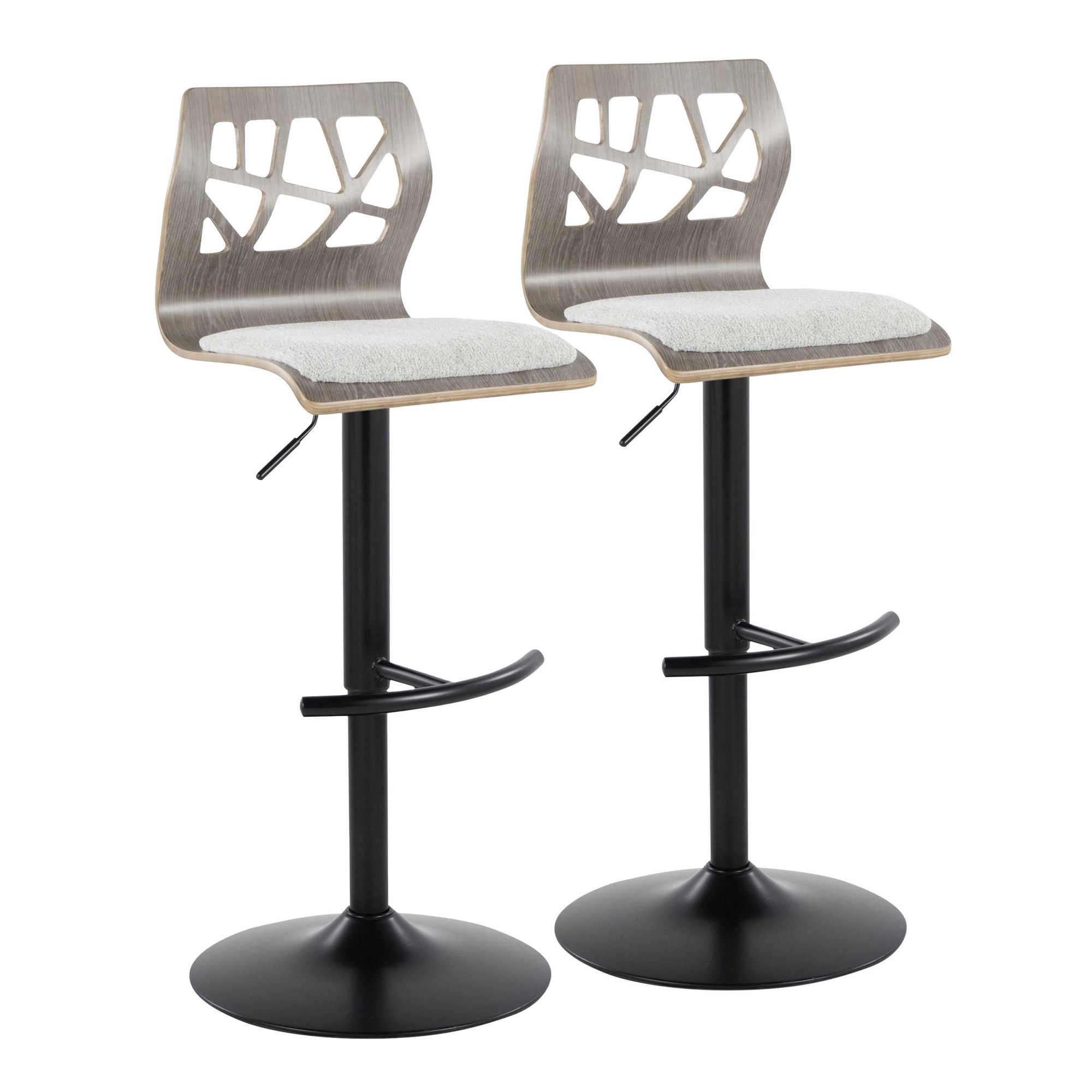 The Folia Adjustable Barstool adds a touch of modern style to any bar or counter area. Its curved wood frame and unique cut-out backrest make it a visually appealing addition to your space. Enjoy both style and comfort with the built-in footrest and upholstered, padded swivel seat.