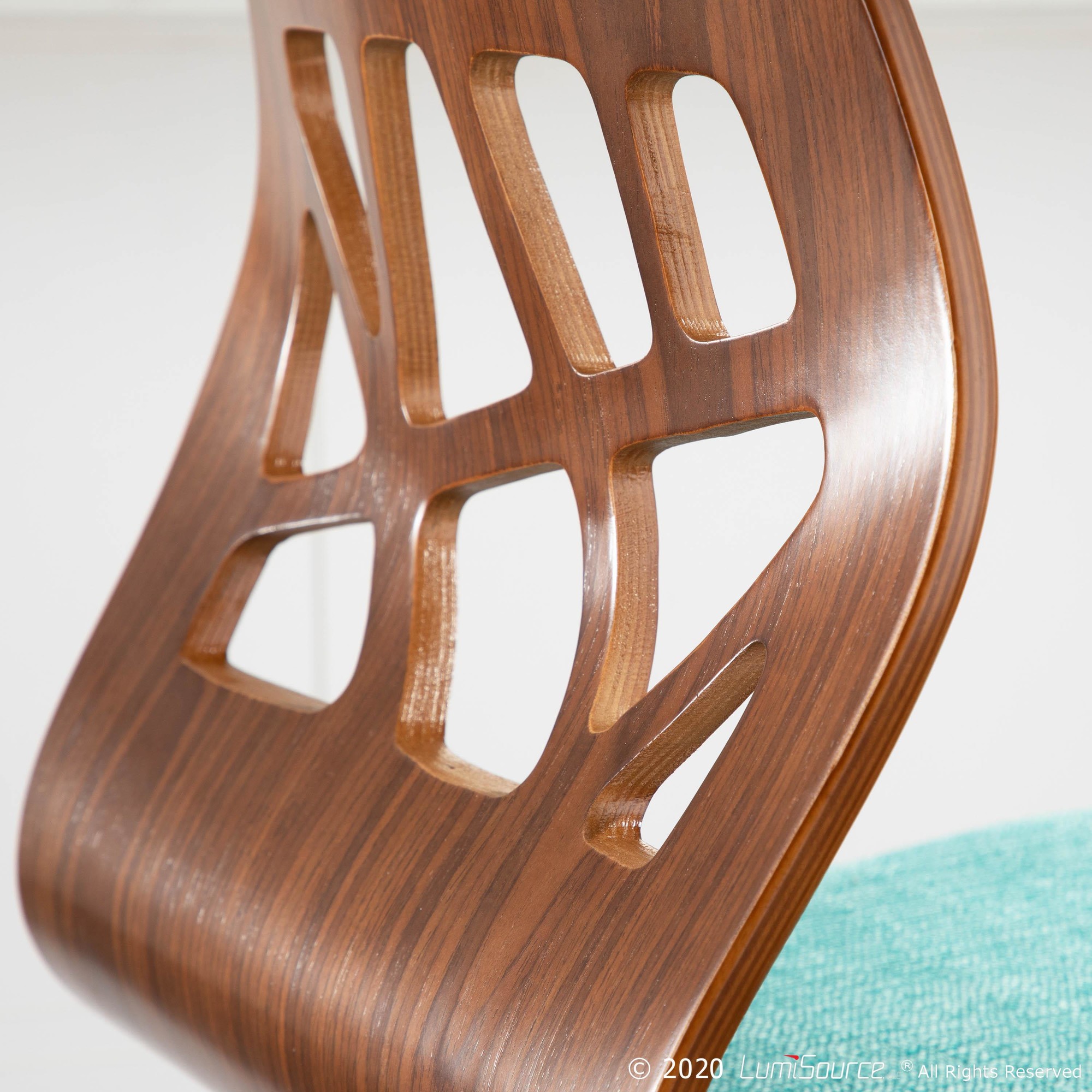 - Color: Walnut Wood, Teal Fabric, Black Metal