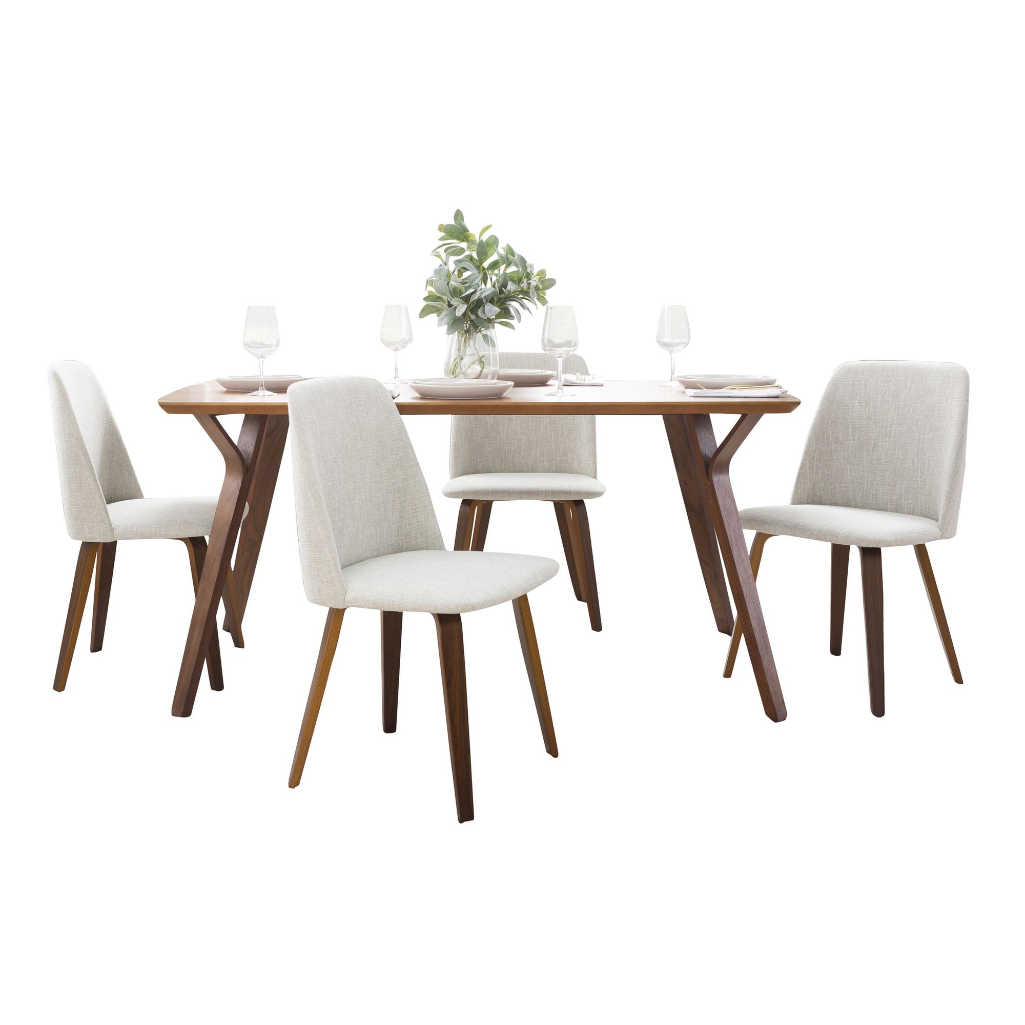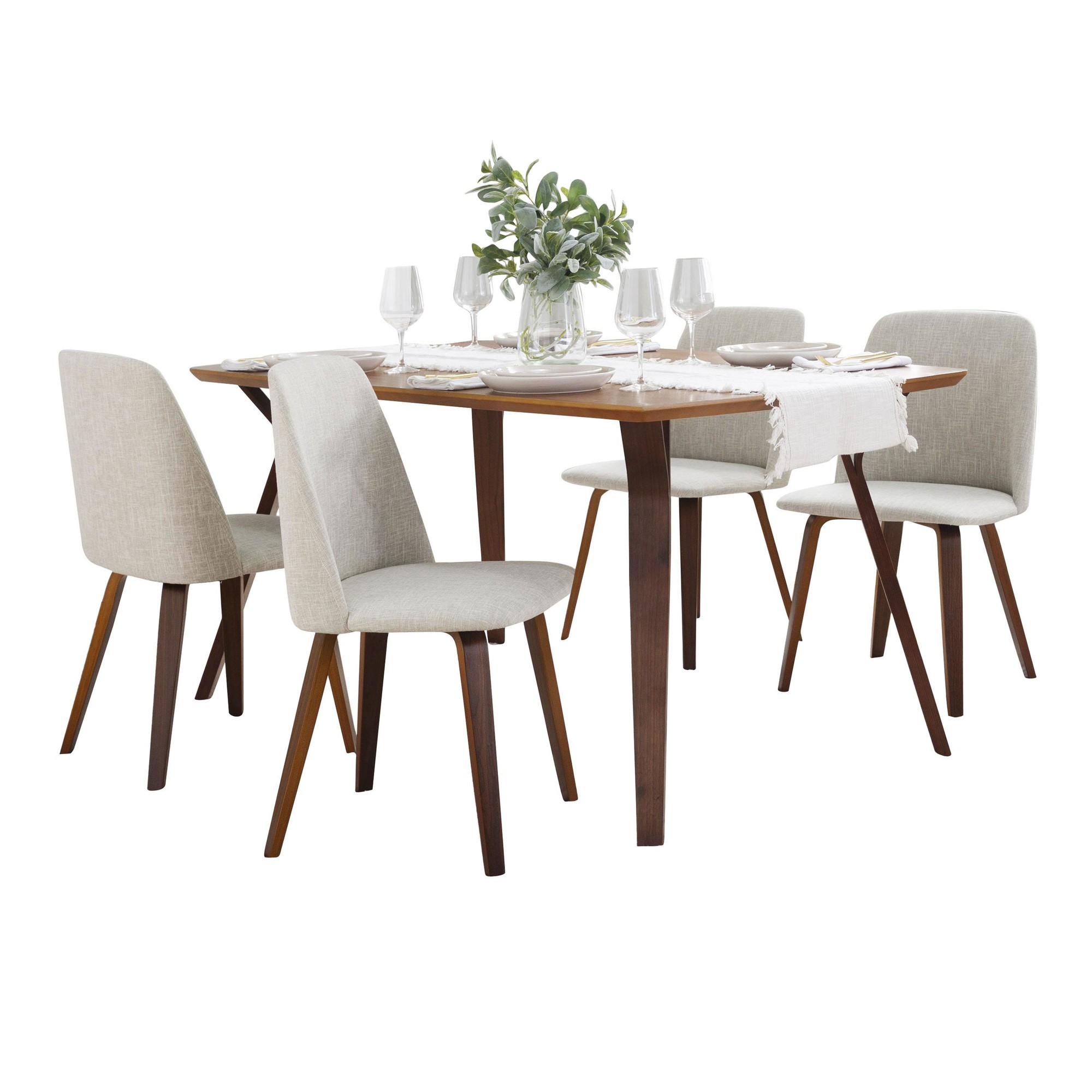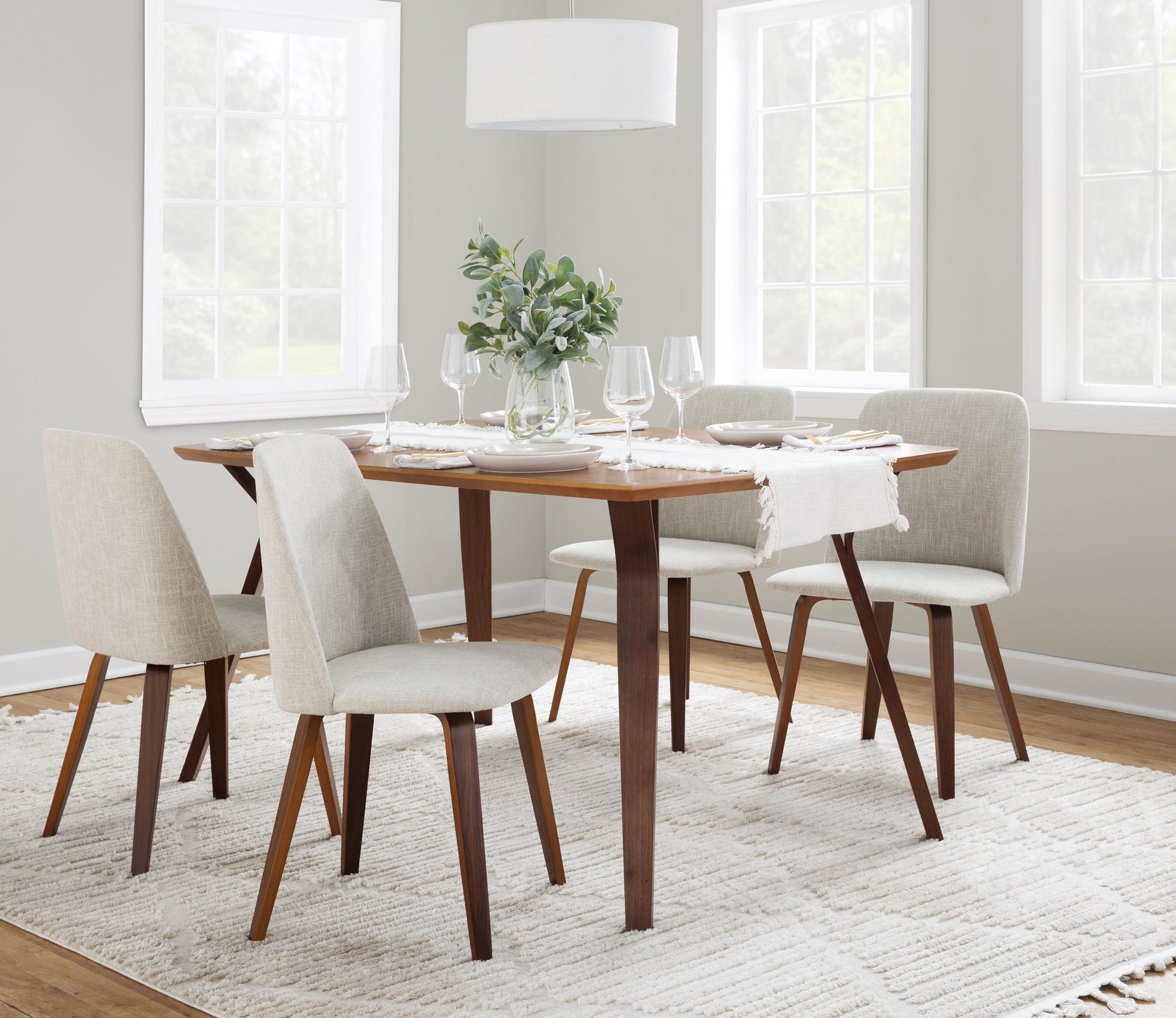 Folia-Toriano Mid-Century Modern Walnut and Beige Dining Set
