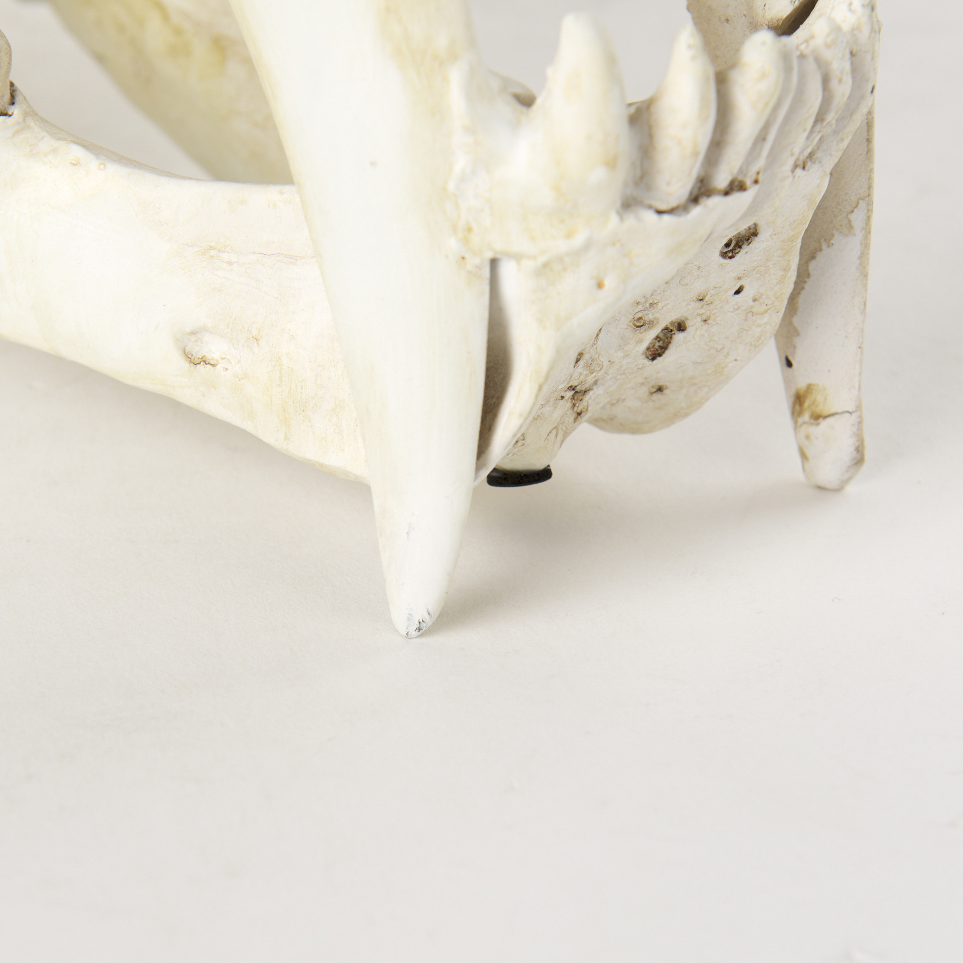 Unleash prehistoric power in your space with the Fozzil Sabretooth Skull Replica! This resin sculpture brings a touch of the Ice Age to your décor with its realistic details and natural bone finish. It’s the perfect way to add an industrial edge and a conversation starter to any room.