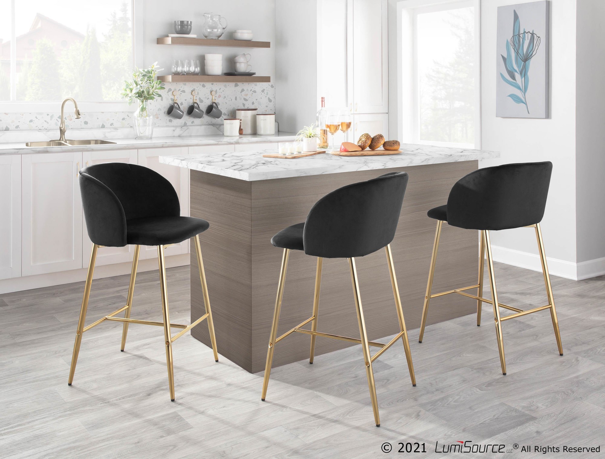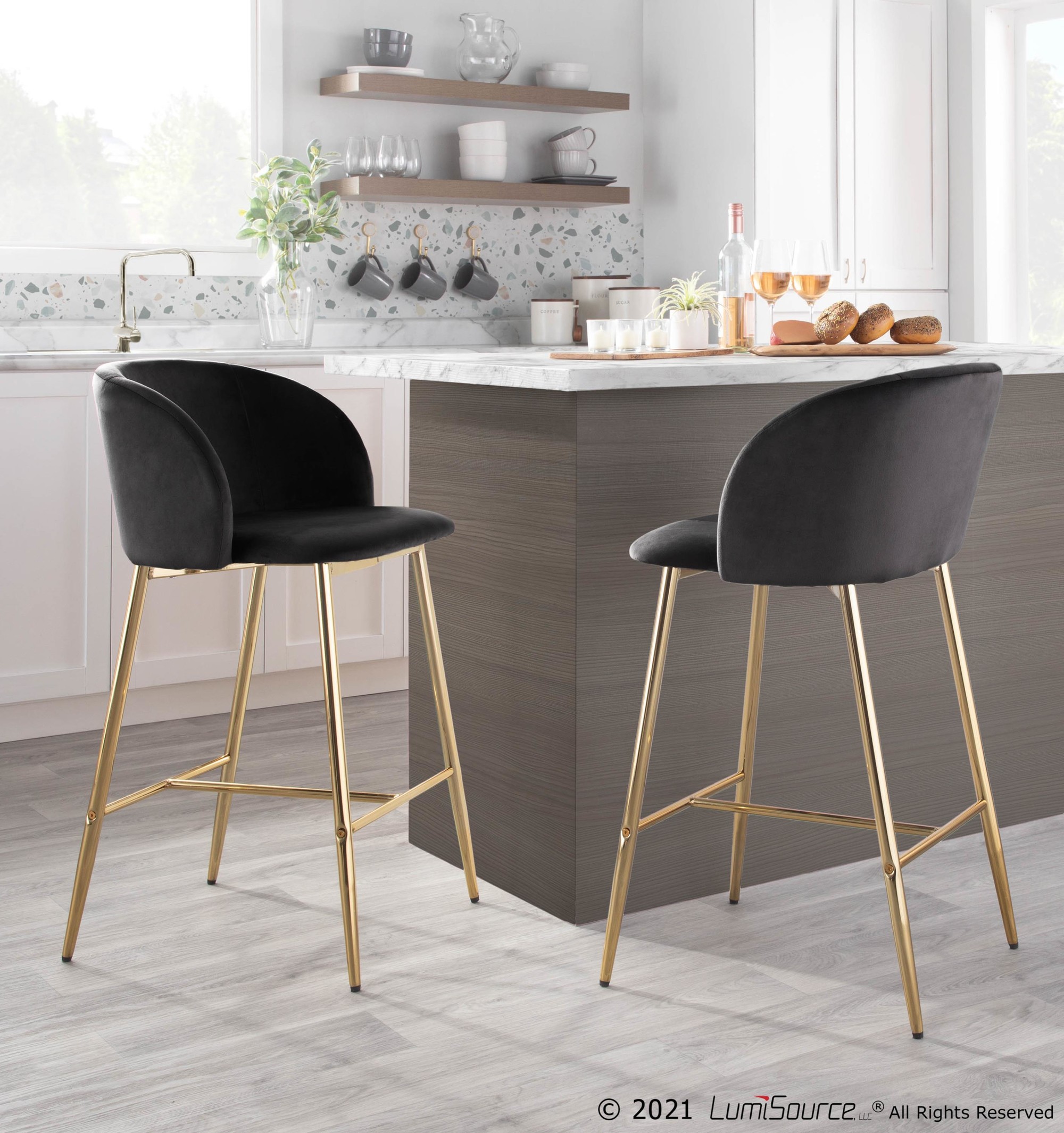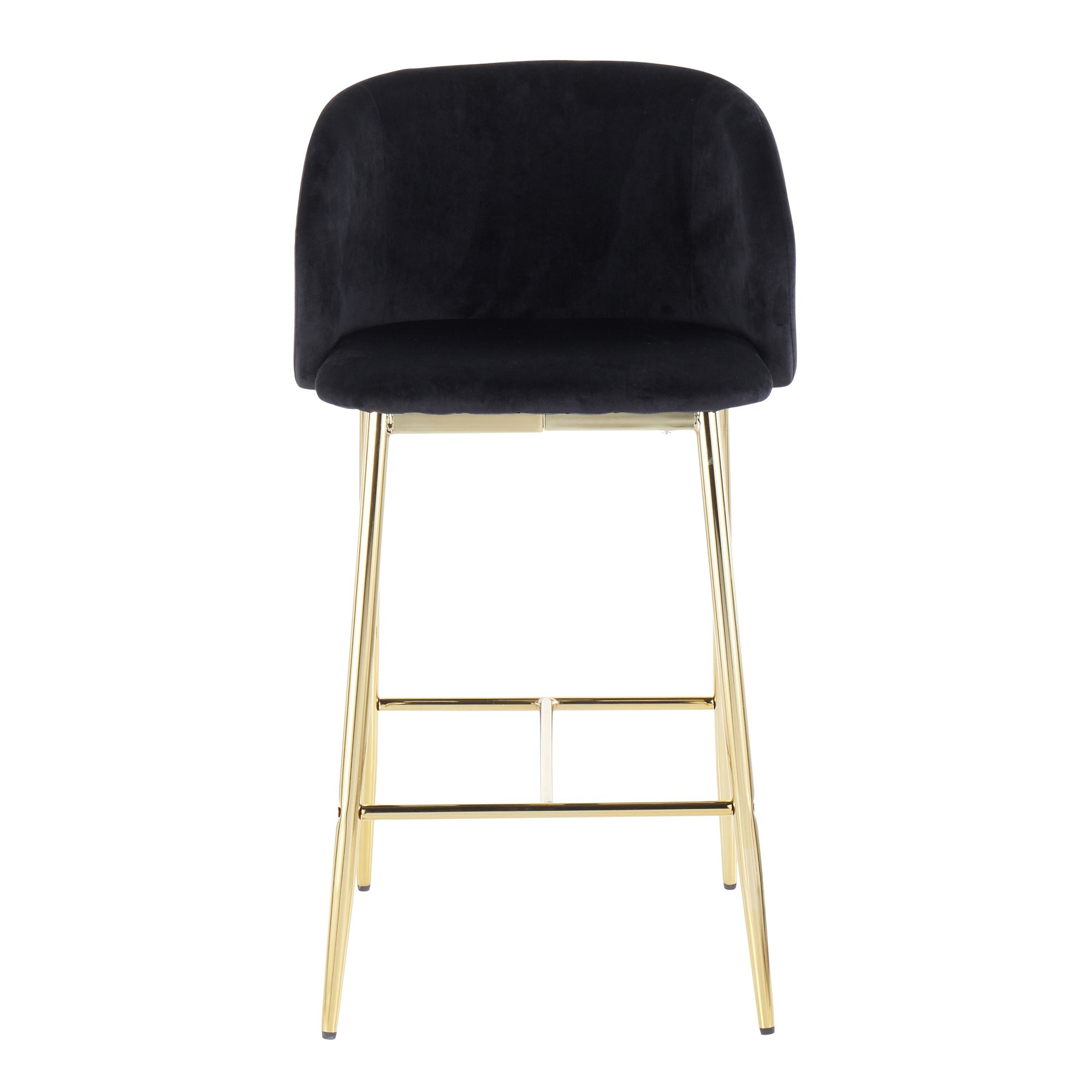The Fran Counter Stools bring beauty to your counter or dining area. These stools feature sophisticated velvet upholstery perfect for contemporary décor. The ultra-comfortable, padded bucket seats are complemented by sleek, tapered legs.