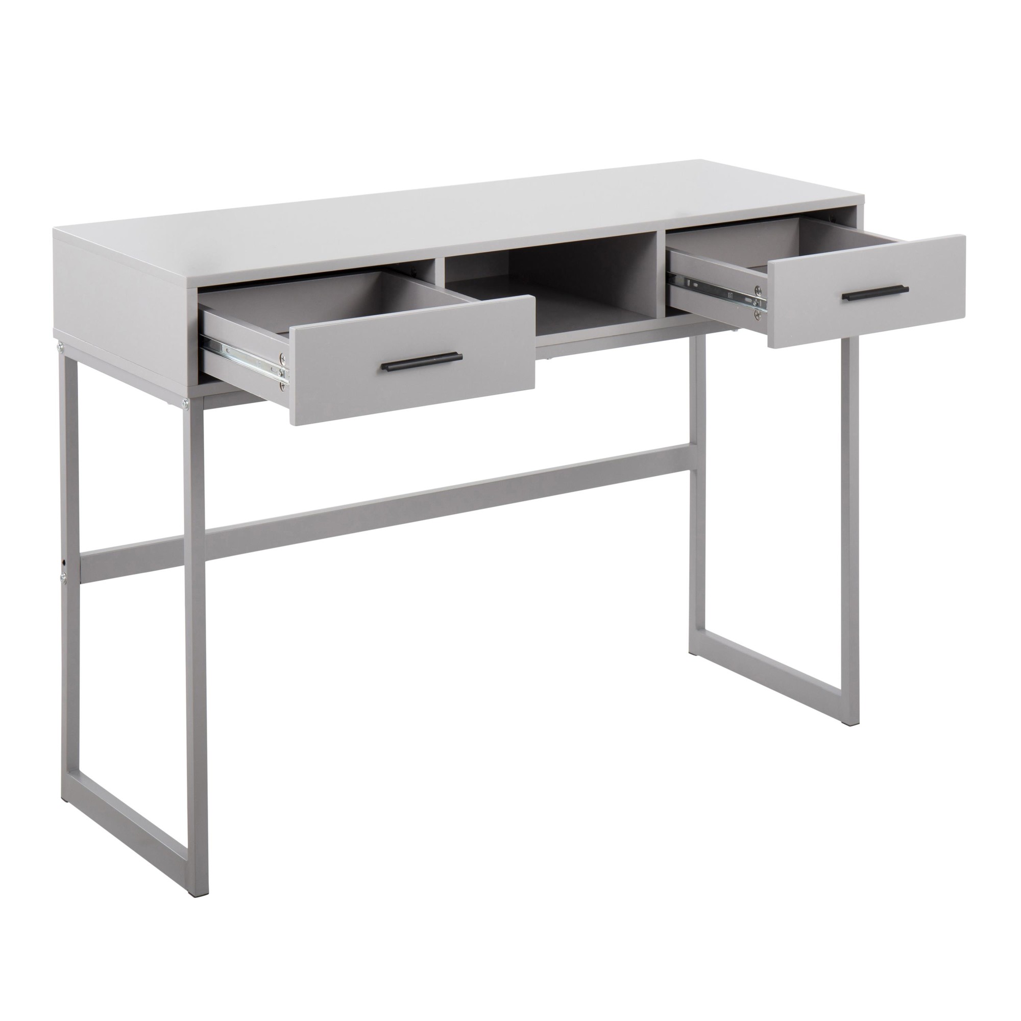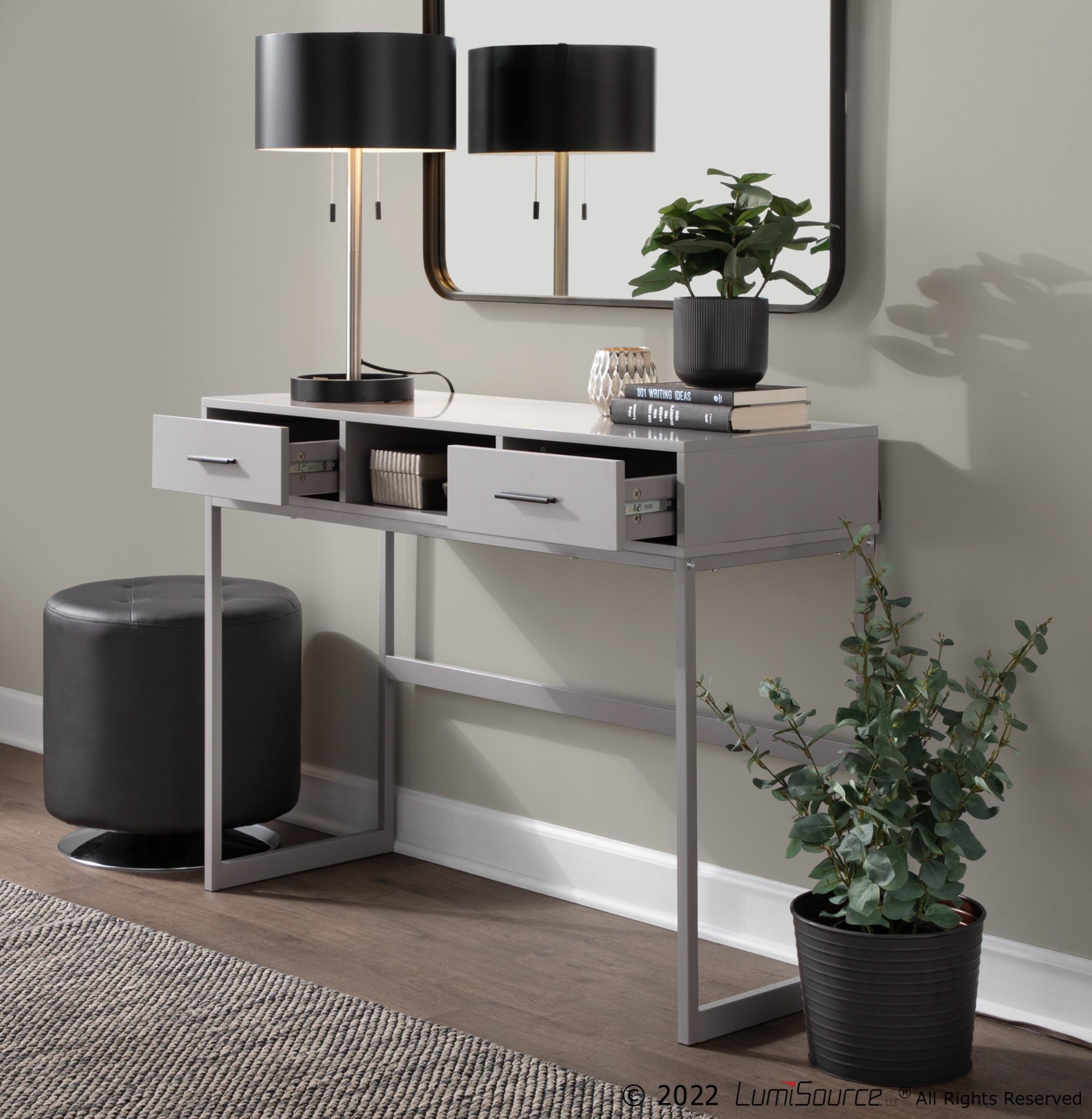 The Franklin Console Table is a simple yet stylish piece, perfect for any space. It features an engineered wood top, a sleek geometrical metal frame, and two drawers for concealed storage. An extra nook provides easy access for your belongings.
