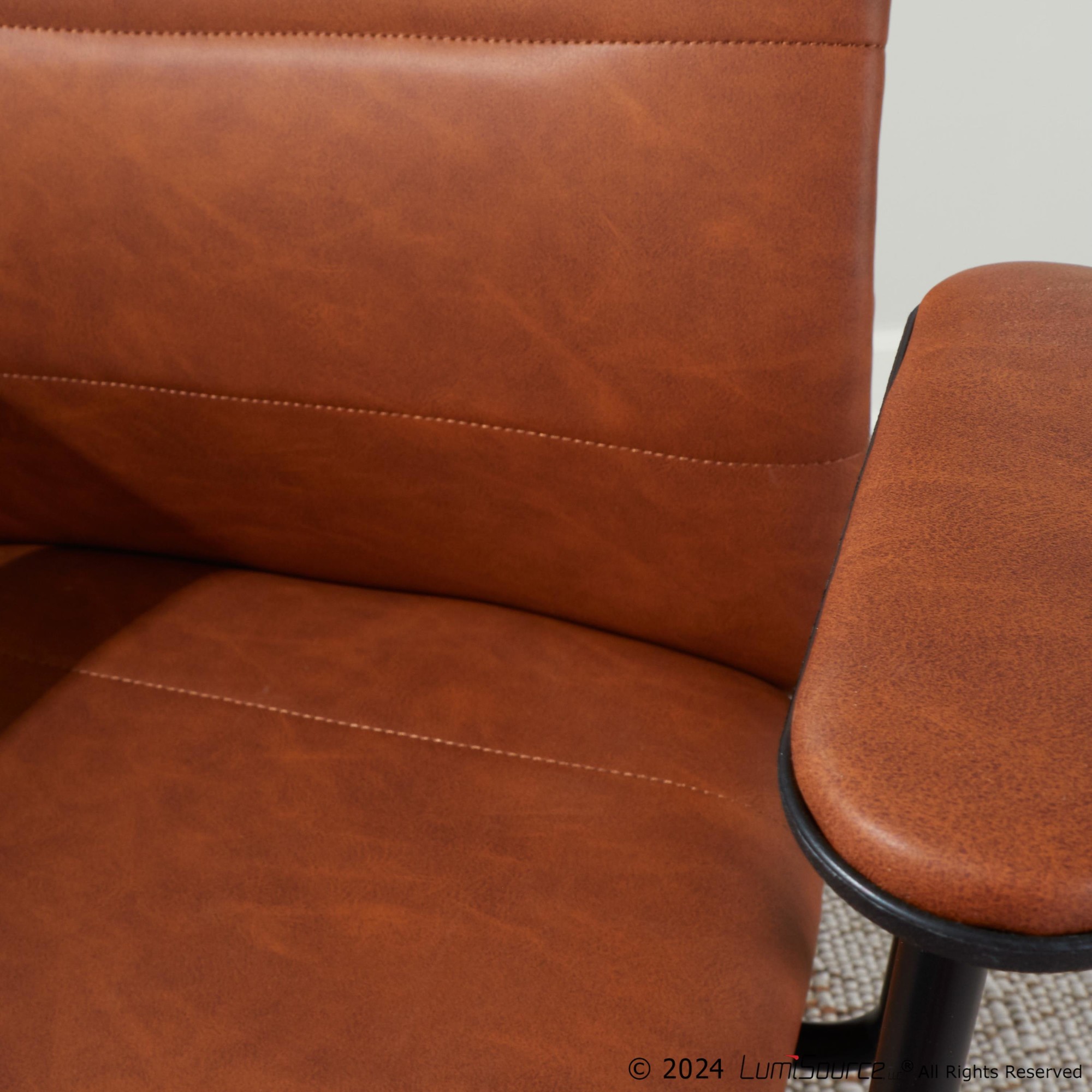 The Fredrick Office Chair brings a contemporary vibe to your workspace. This eye-catching chair features faux leather upholstery with stylish horizontal tufting, offering both comfort and a modern look. The contrasting black metal 5-star caster base provides mobility and stability.